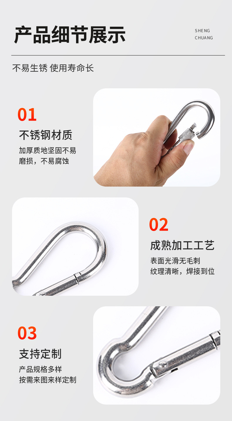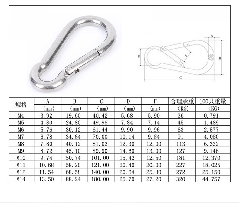 304/316 스테인레스 스틸 스프링 버클 루프와 마더 마운틴 클라이밍 키 체인 버클 도그 체인스토어 가기