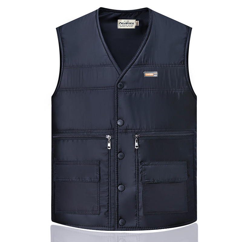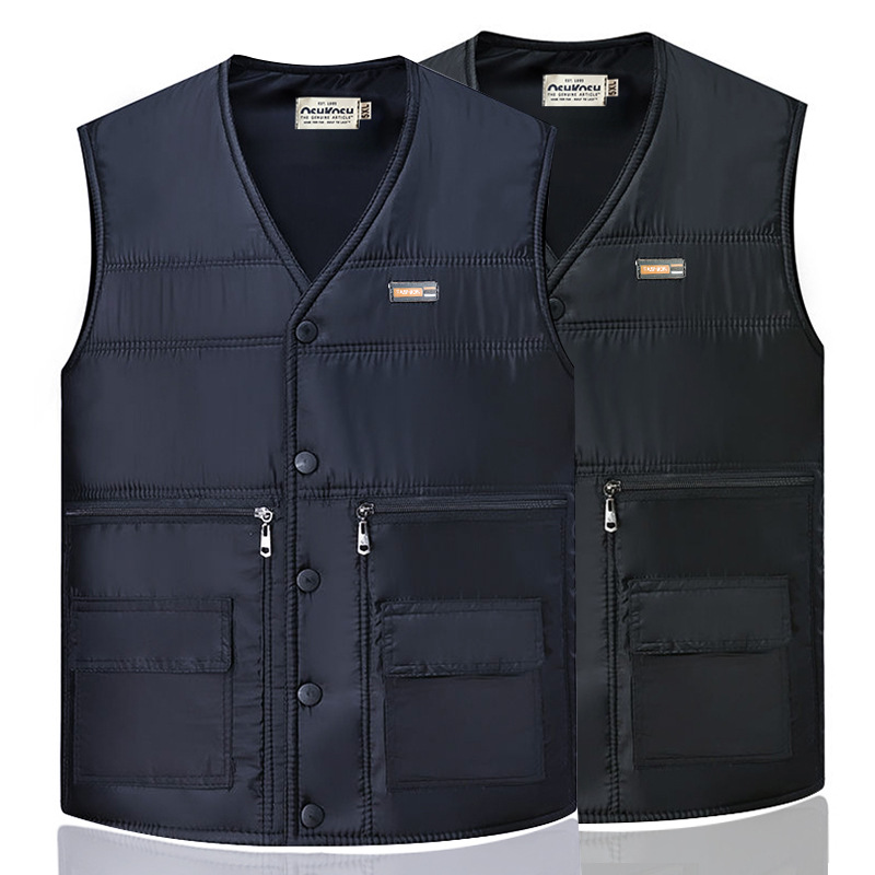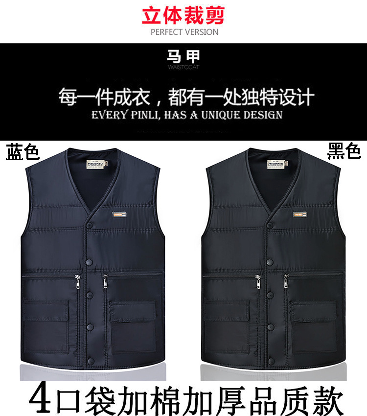 새로운 가을 및 겨울 면화 조끼 지퍼 대형 포켓 남성 중년 및 노인 조끼 멀티 포켓 따뜻한 허리 코트 아빠 조끼