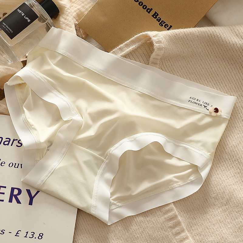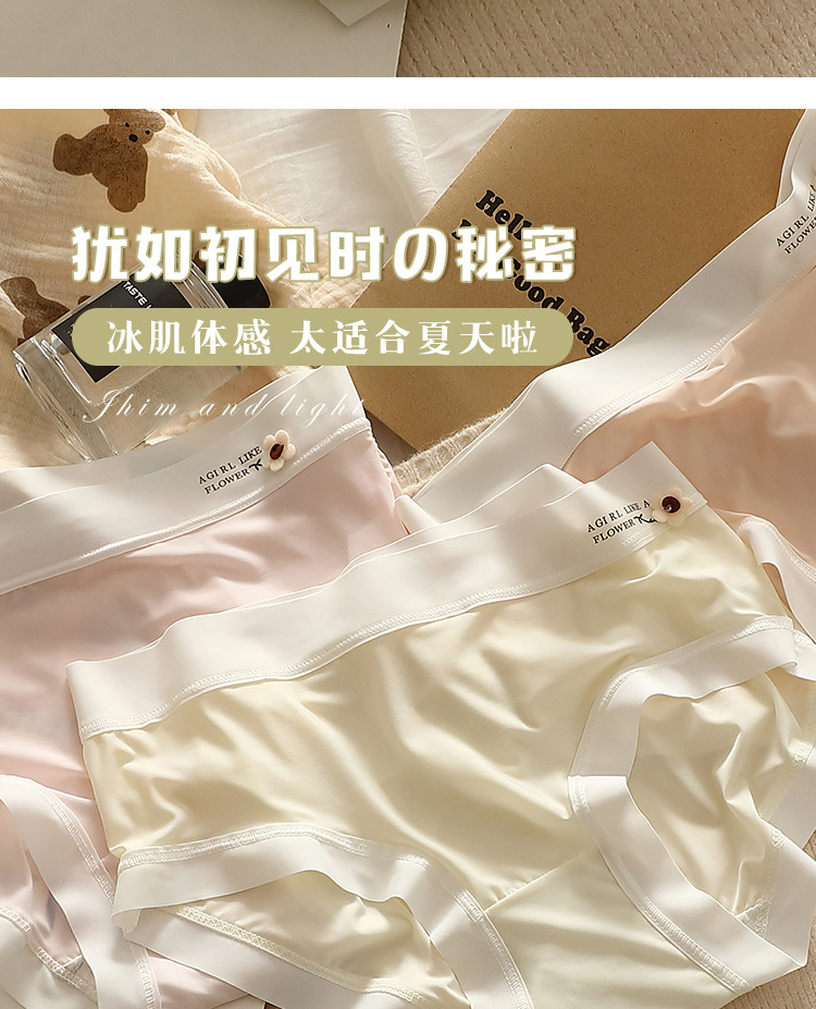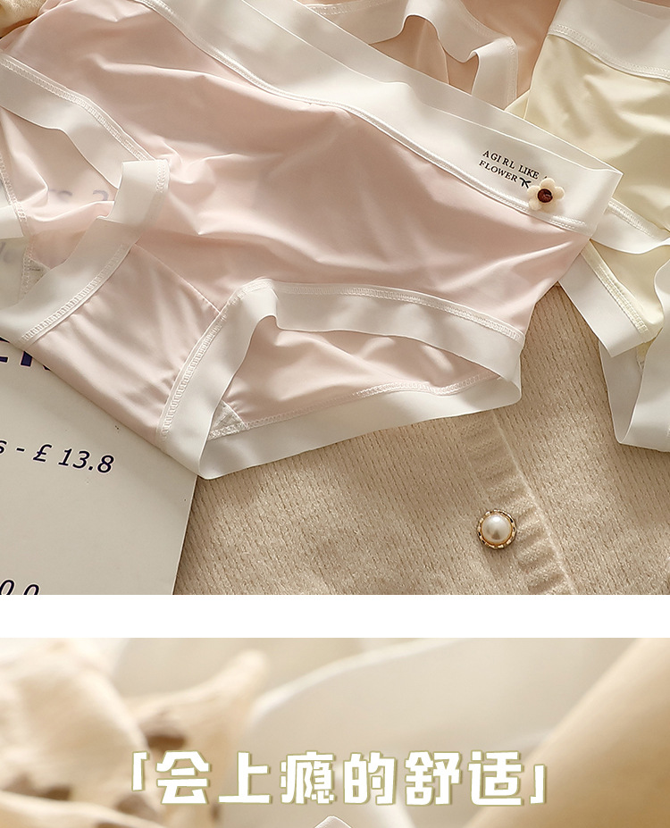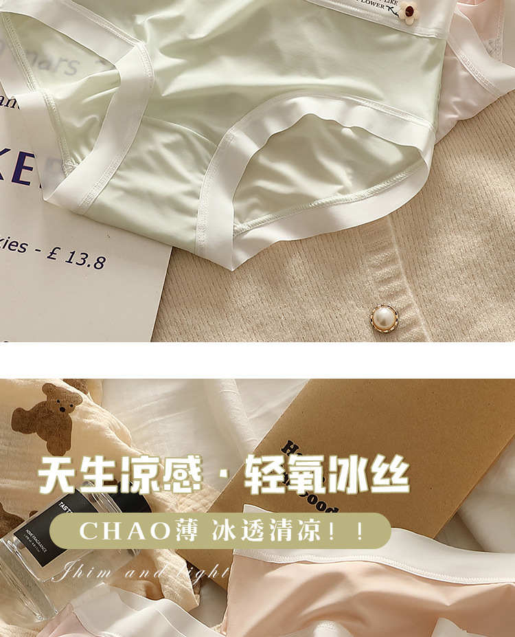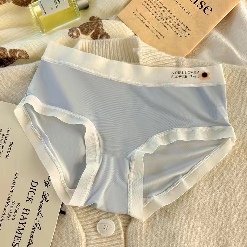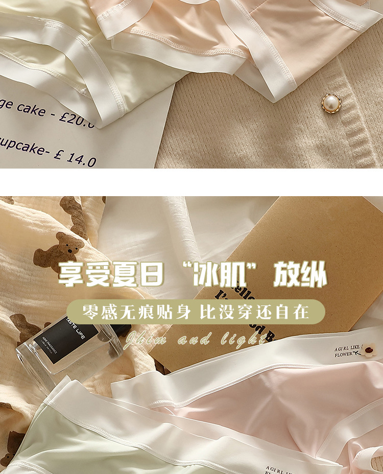 얇은 얼음 실크 속옷 여성의 중간 허리 섹시한 소녀 학생 원활한 여름 벌거 벗은 엉덩이 마스크 바지 브리프