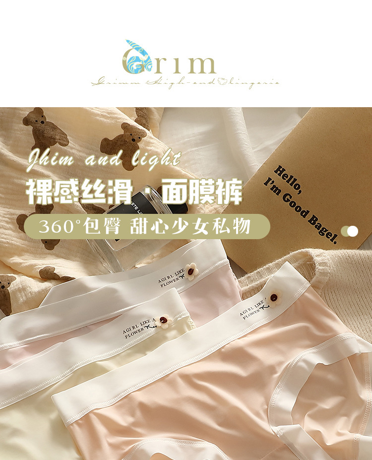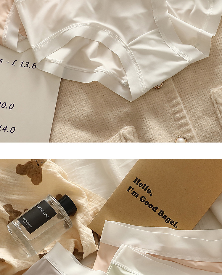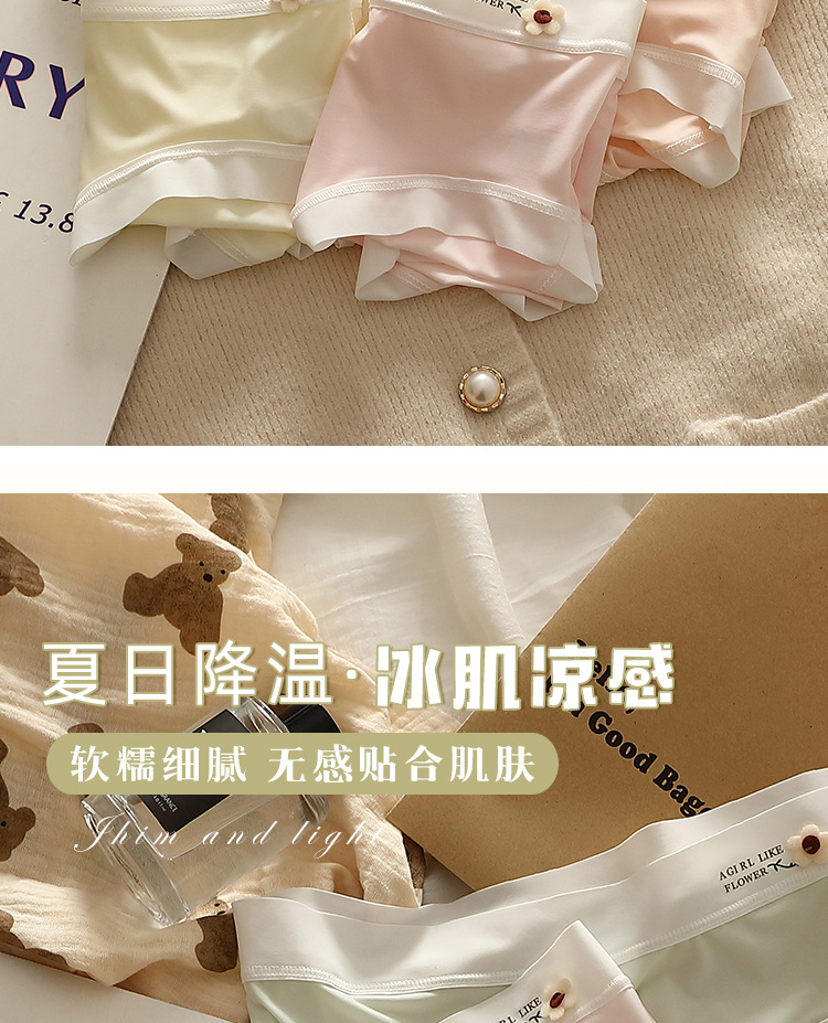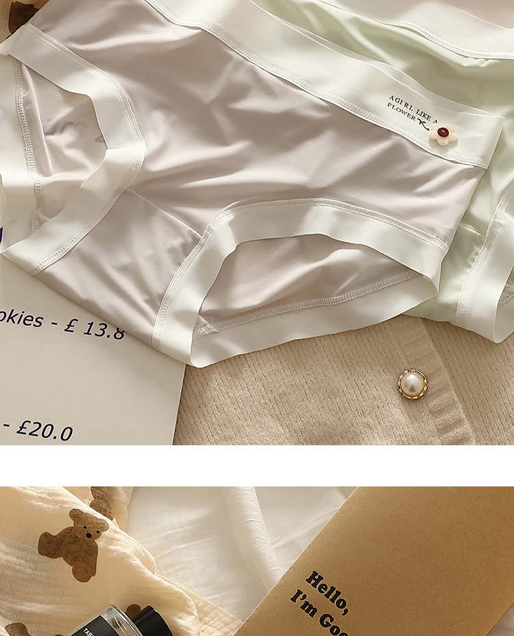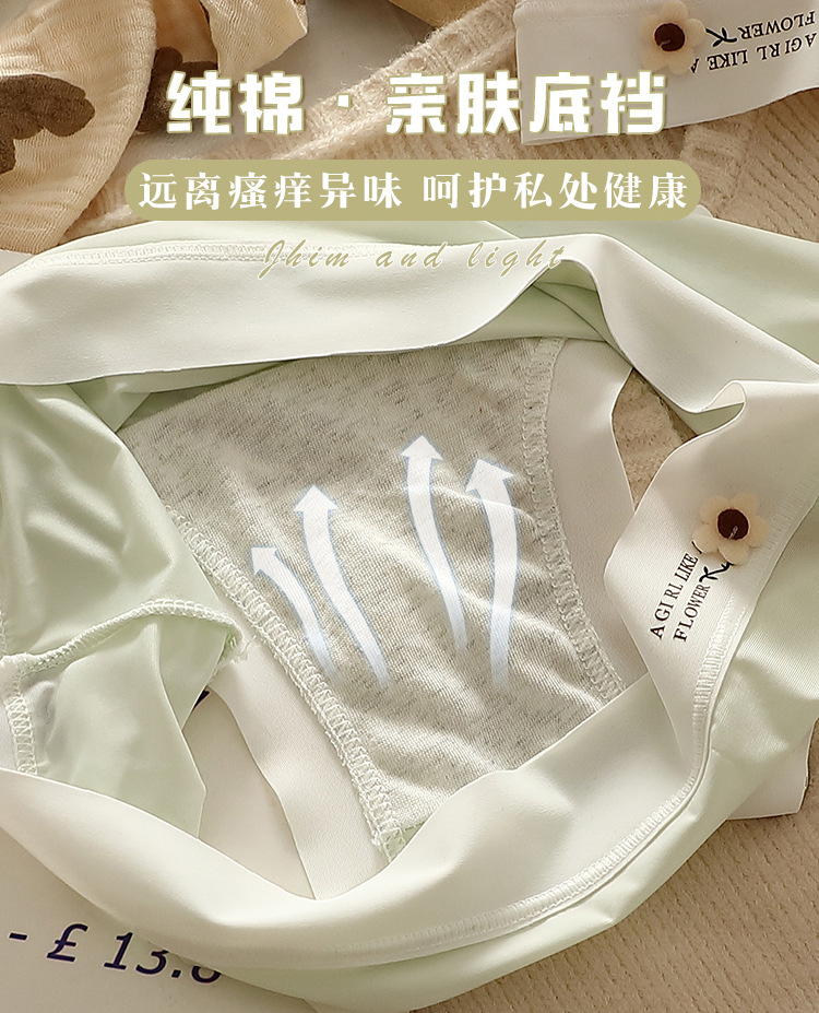 얇은 얼음 실크 속옷 여성의 중간 허리 섹시한 소녀 학생 원활한 여름 벌거 벗은 엉덩이 마스크 바지 브리프