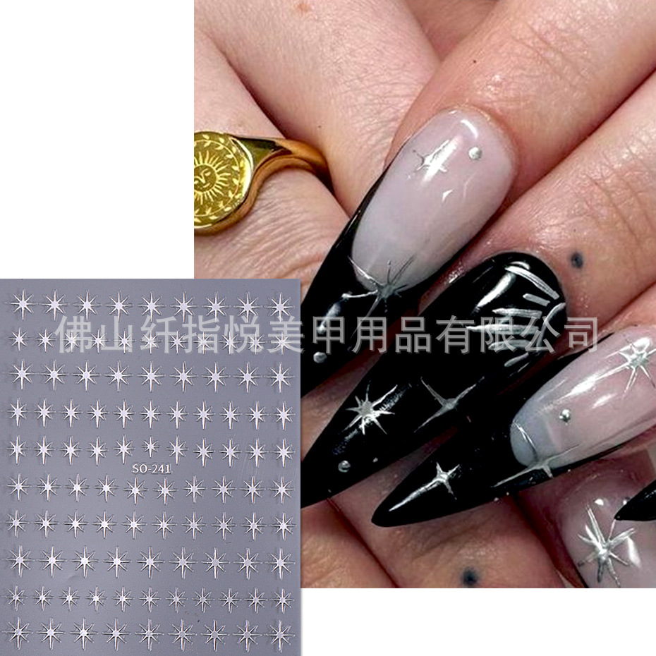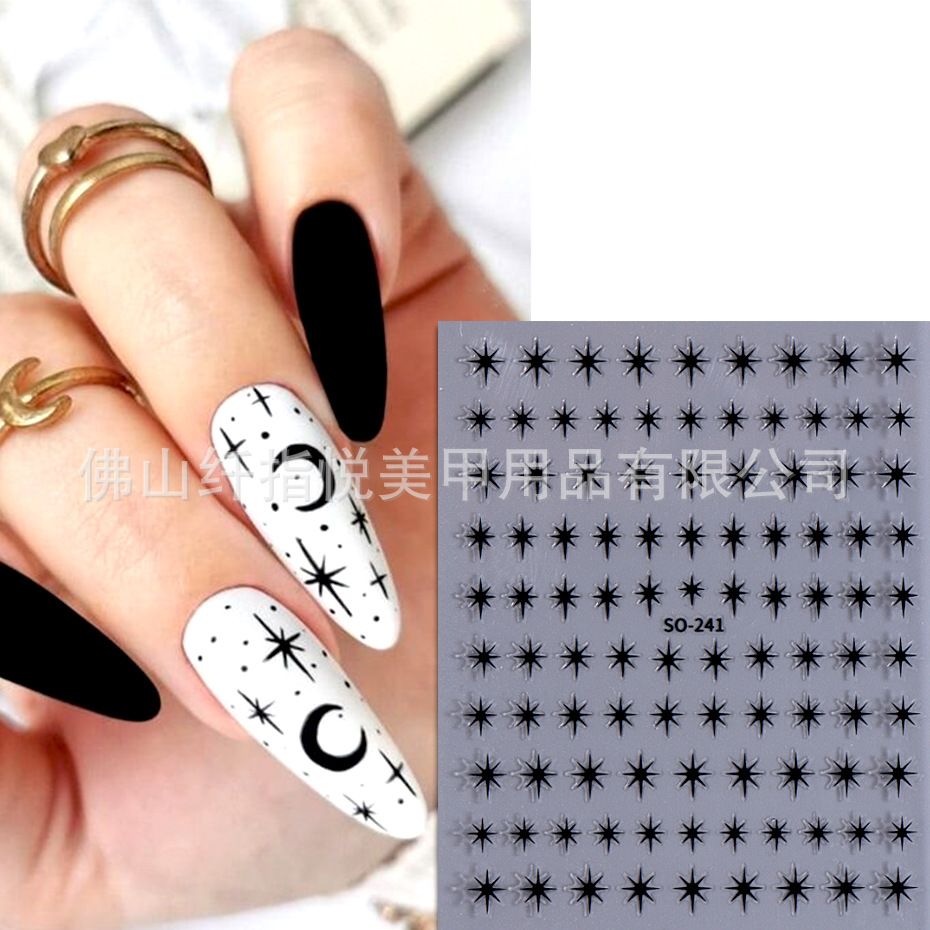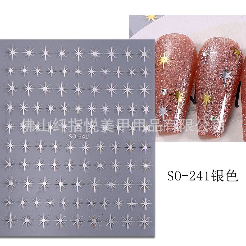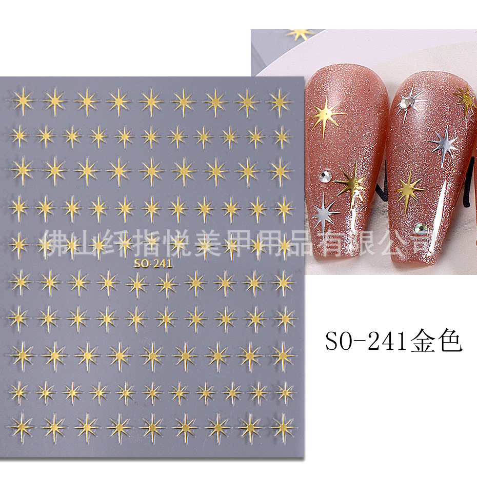 국경 간 핫 네일 아트 스티커 도매 흑인과 화이트 골드 및 실버 Y2K 작은 태양 기반 접착 네일 데칼 장식스토어 가기