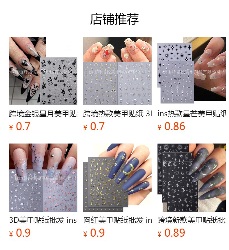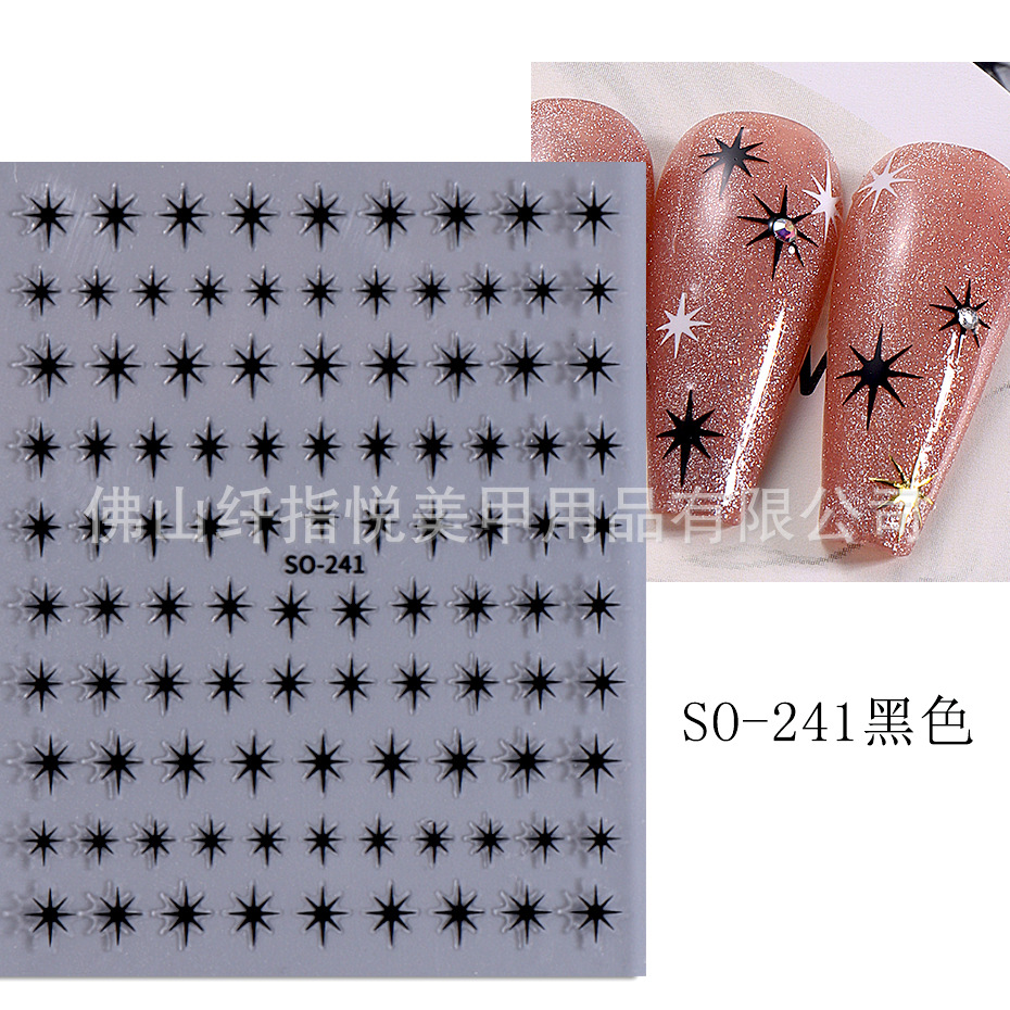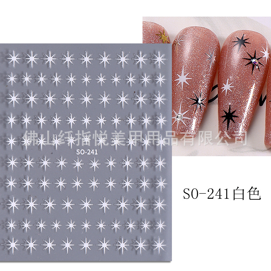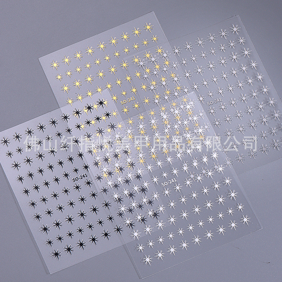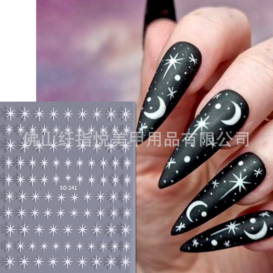 국경 간 핫 네일 아트 스티커 도매 흑인과 화이트 골드 및 실버 Y2K 작은 태양 기반 접착 네일 데칼 장식스토어 가기