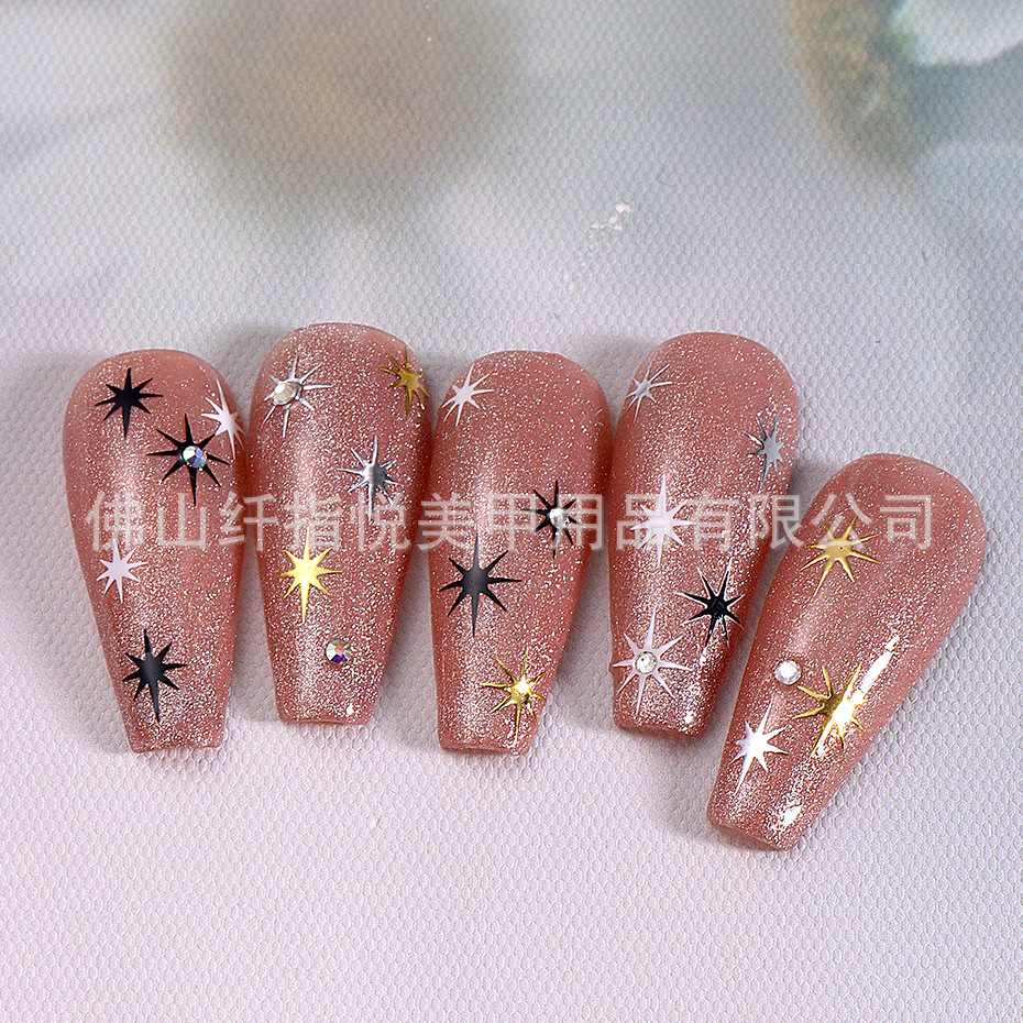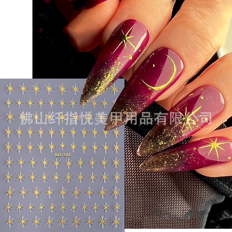 국경 간 핫 네일 아트 스티커 도매 흑인과 화이트 골드 및 실버 Y2K 작은 태양 기반 접착 네일 데칼 장식