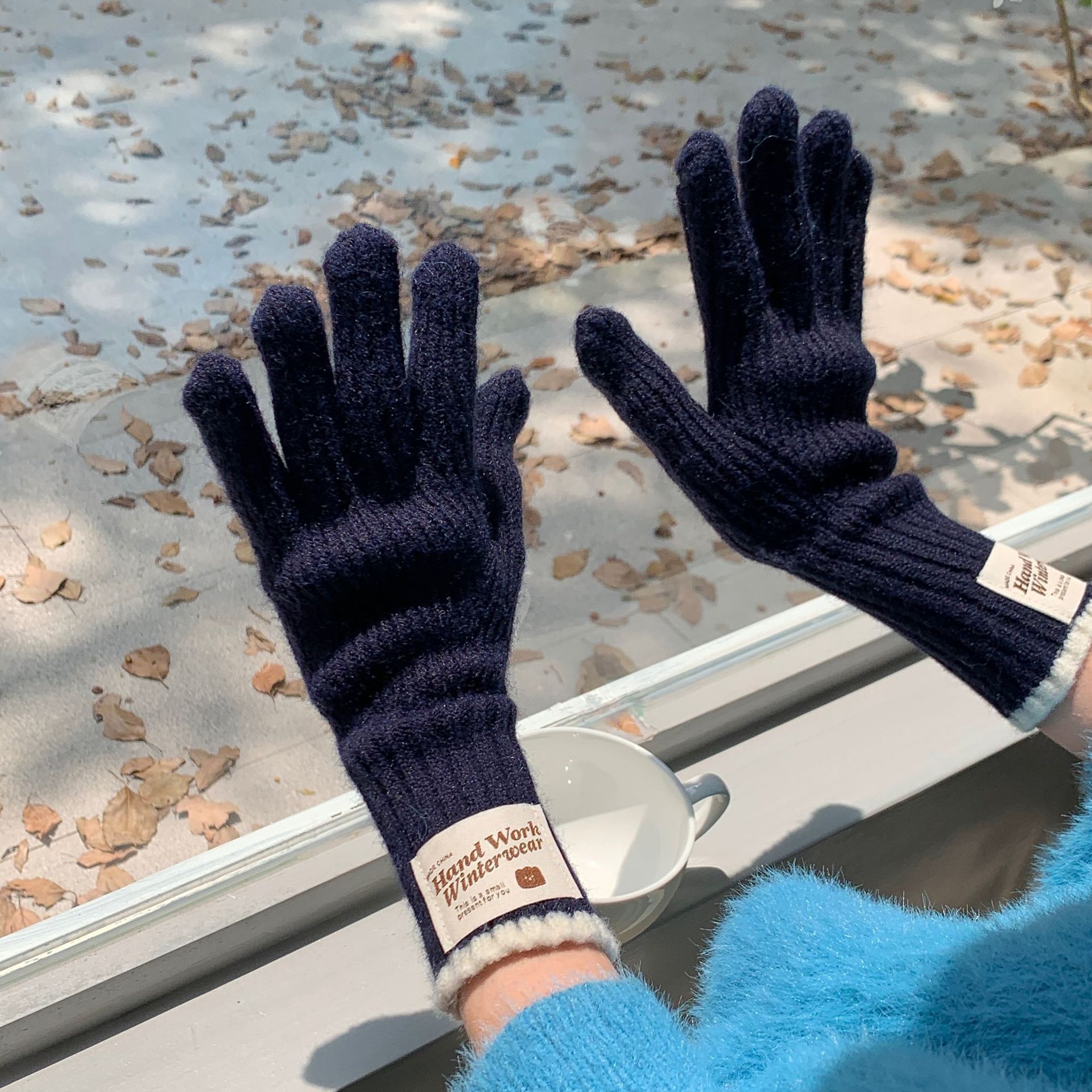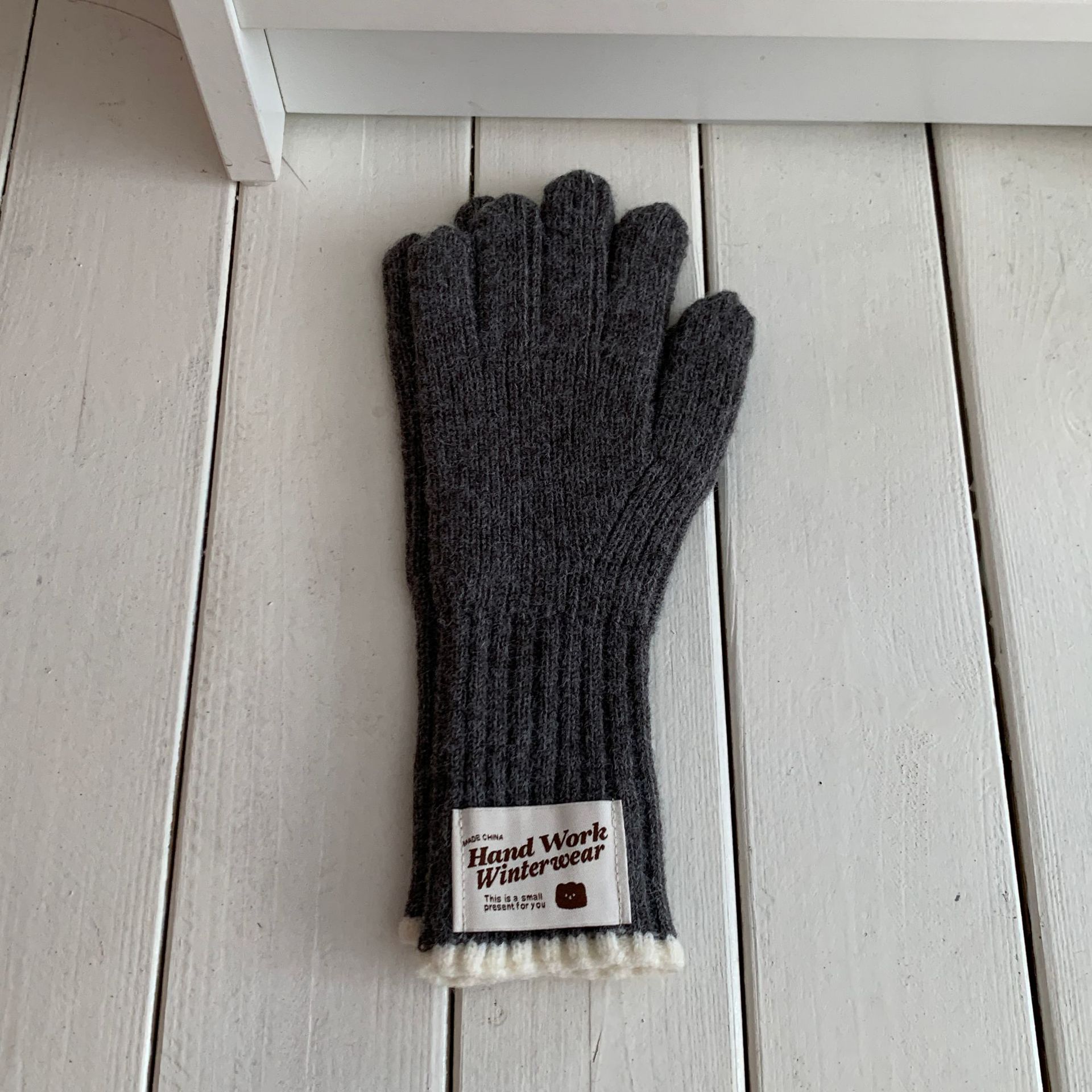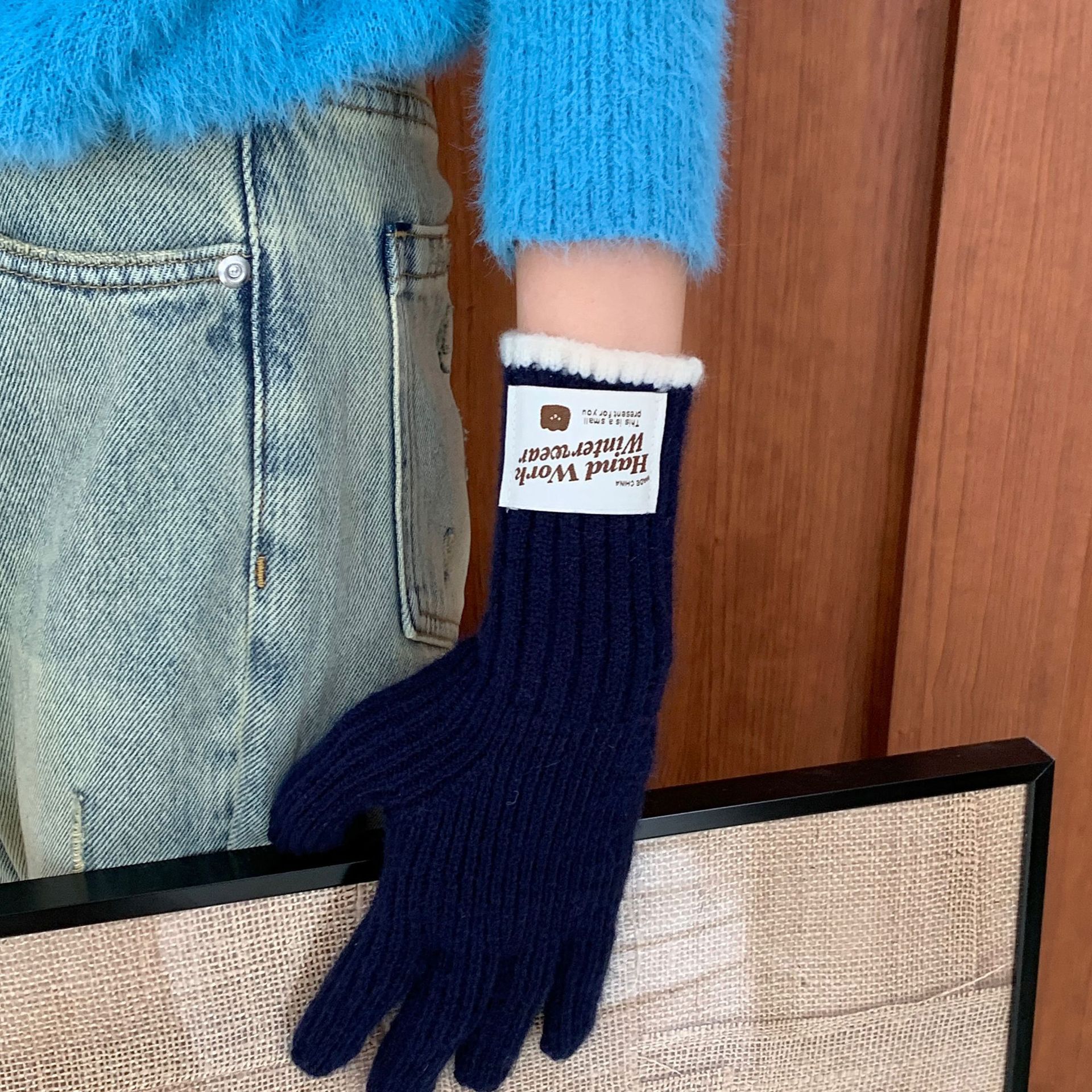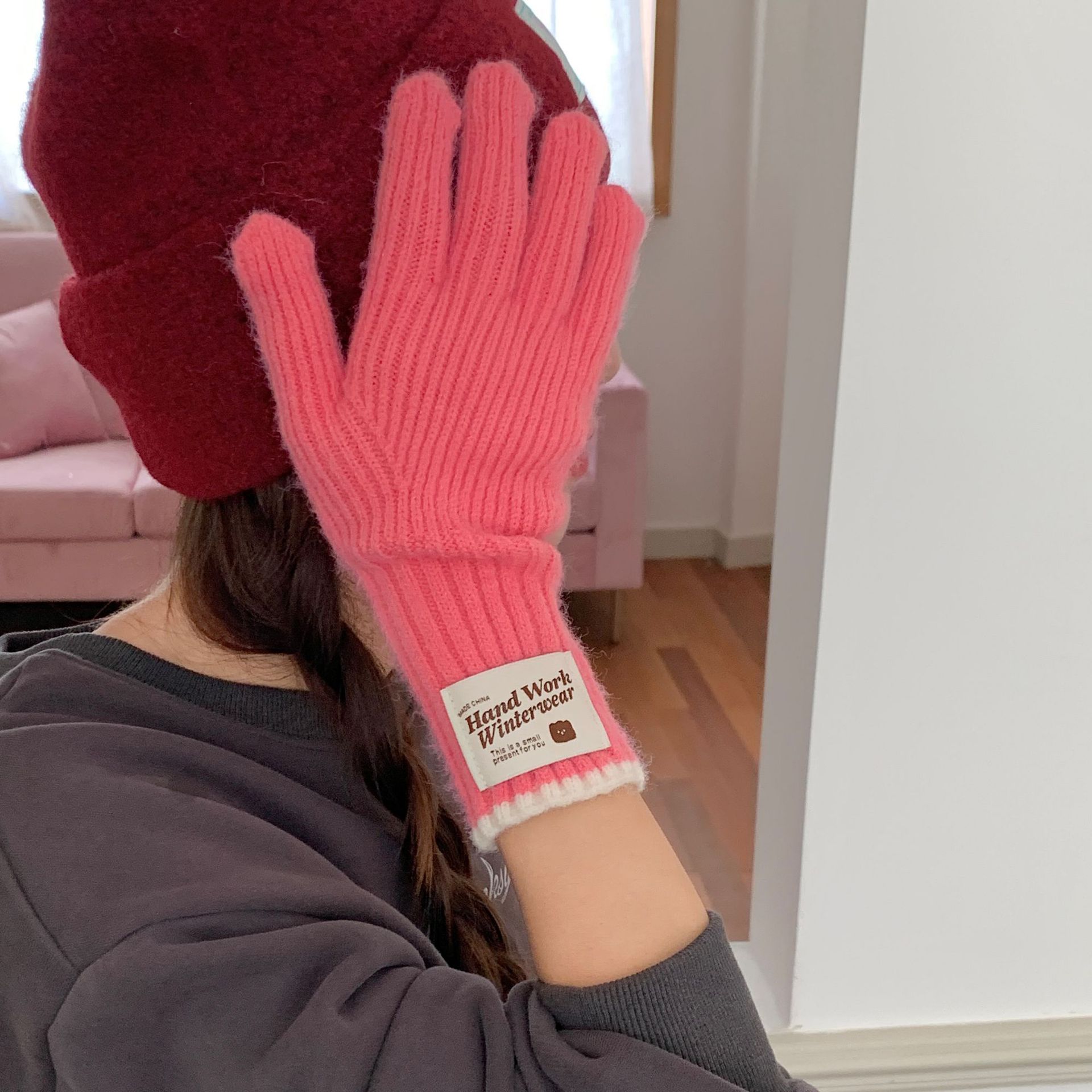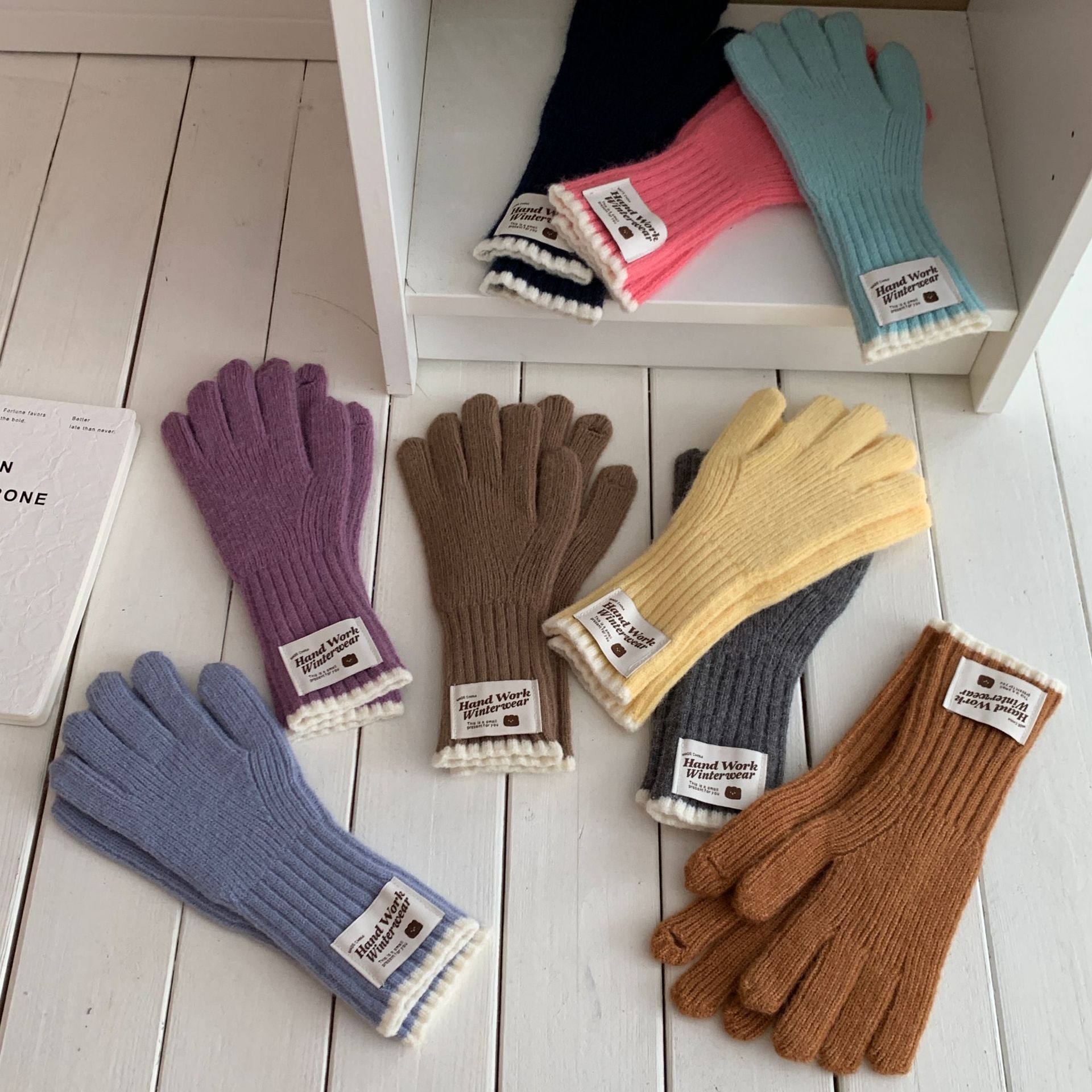 솔리드 컬러 하프 핑거 니트 울 장갑 대조적 인 색상 바느질 여성용 겨울 손가락 2024 새로운 터치 스크린 냉난방 및 보온 유지스토어 가기