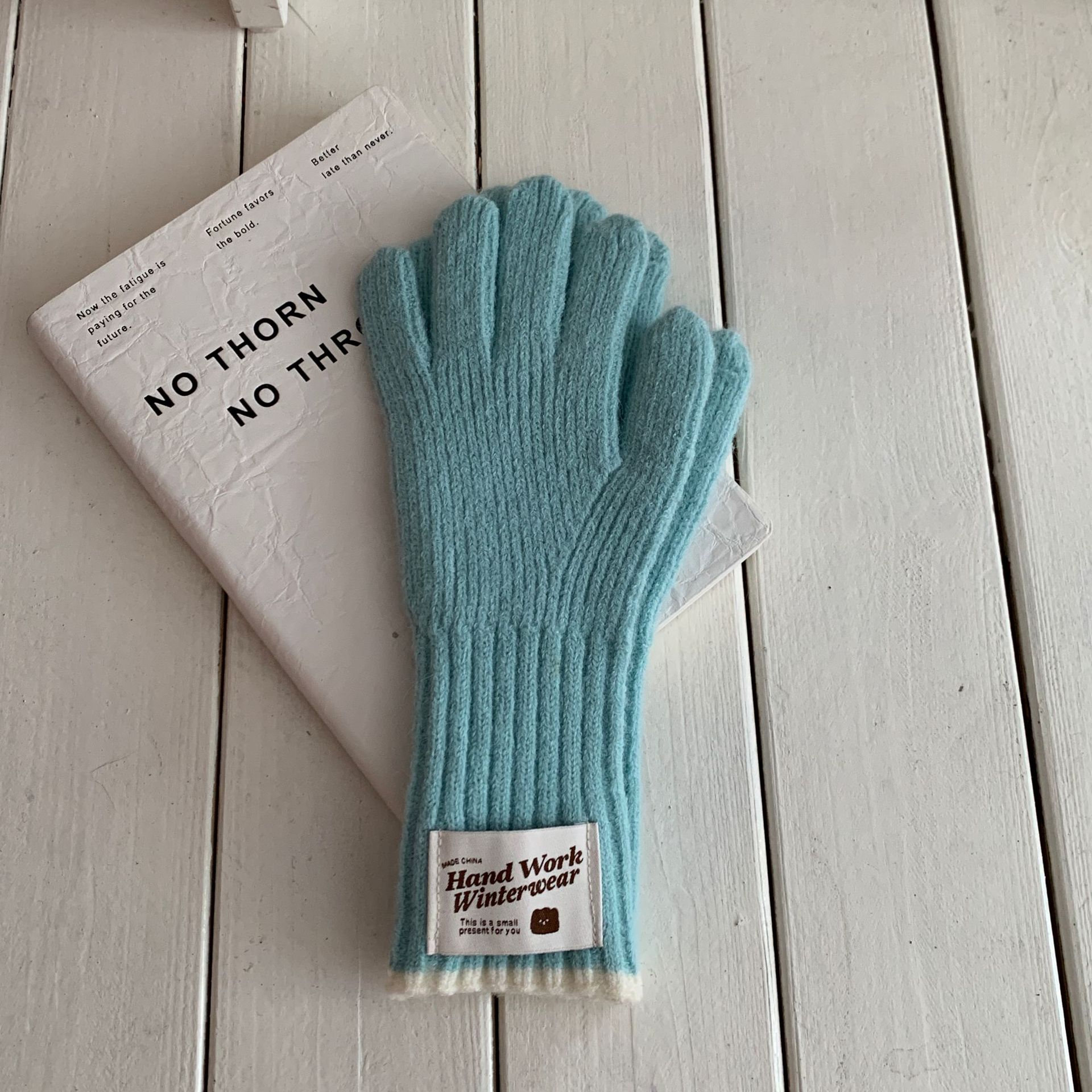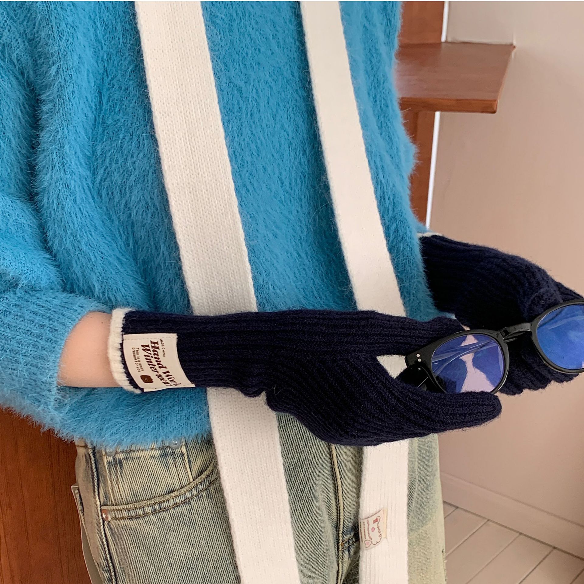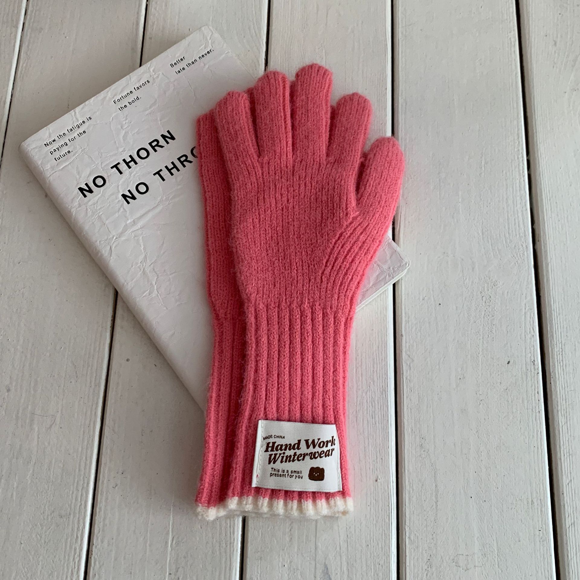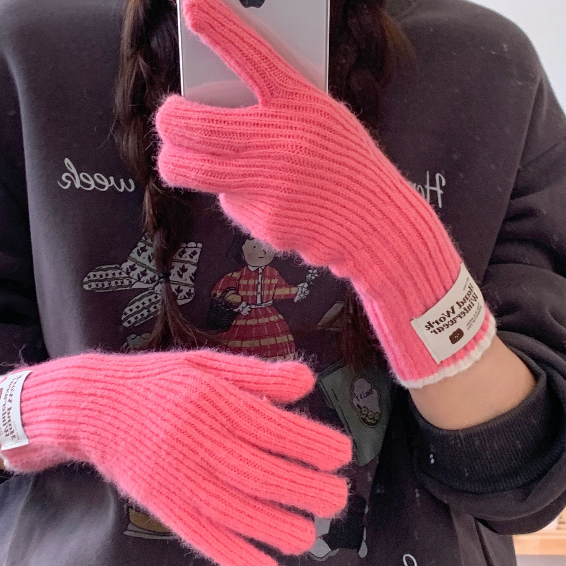 솔리드 컬러 하프 핑거 니트 울 장갑 대조적 인 색상 바느질 여성용 겨울 손가락 2024 새로운 터치 스크린 냉난방 및 보온 유지스토어 가기