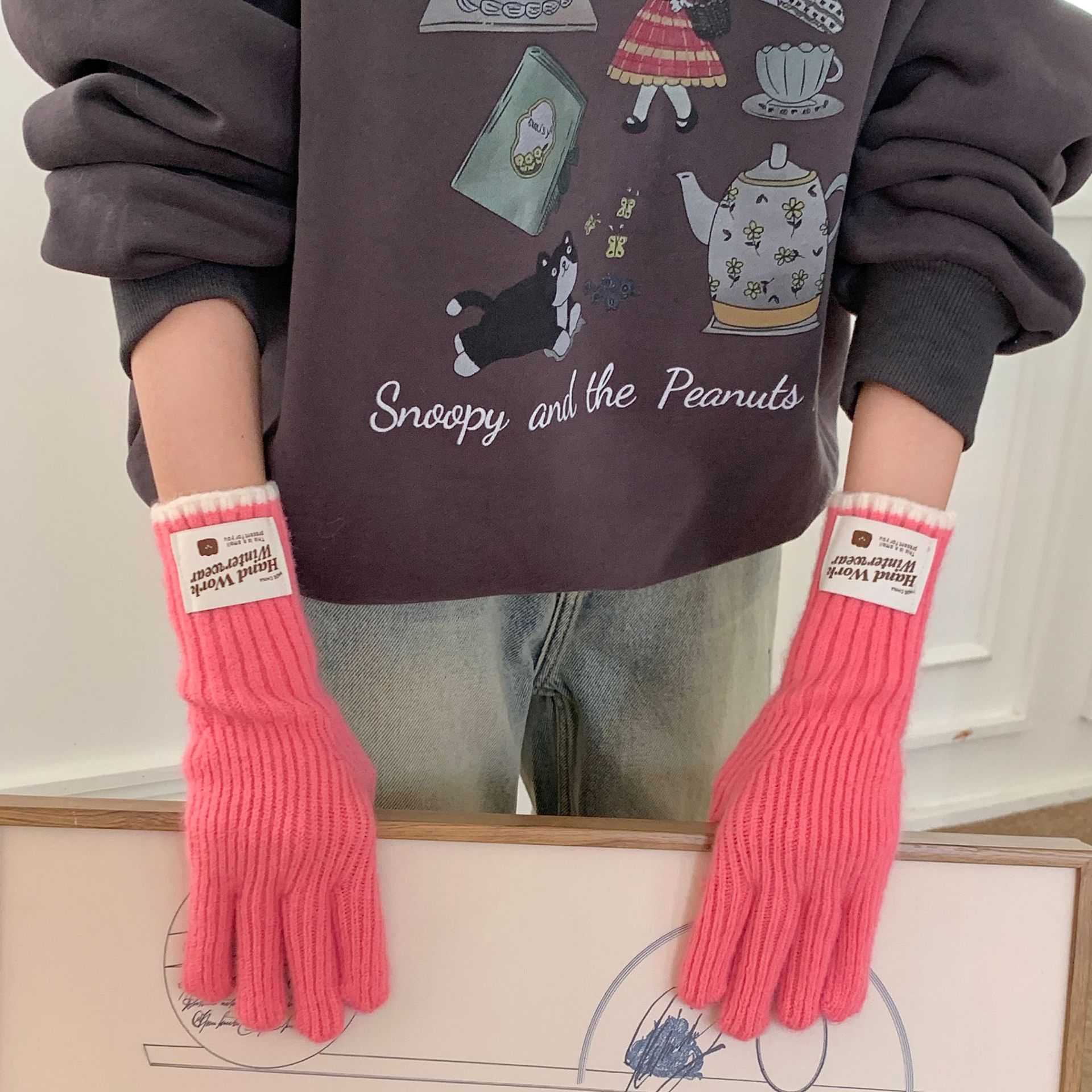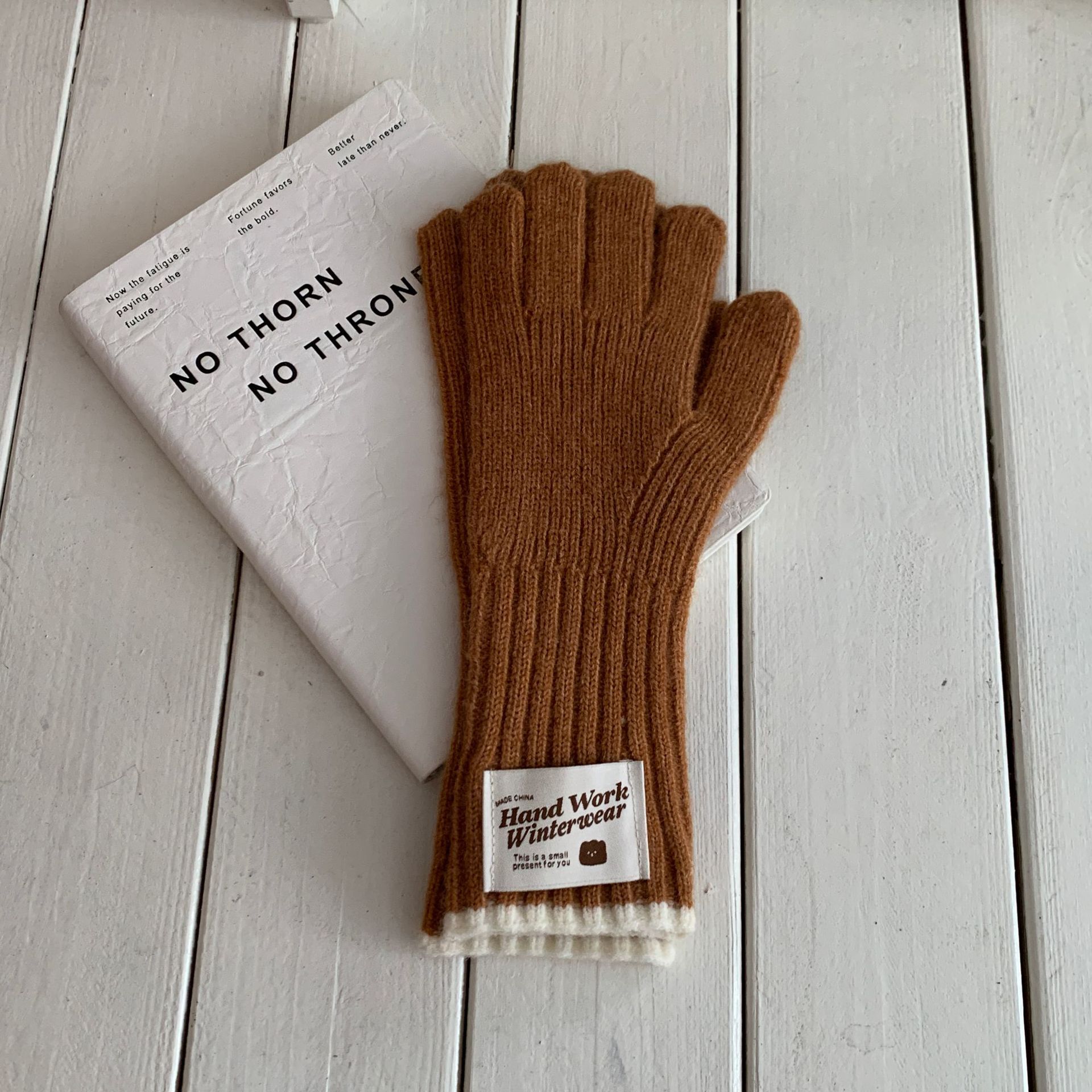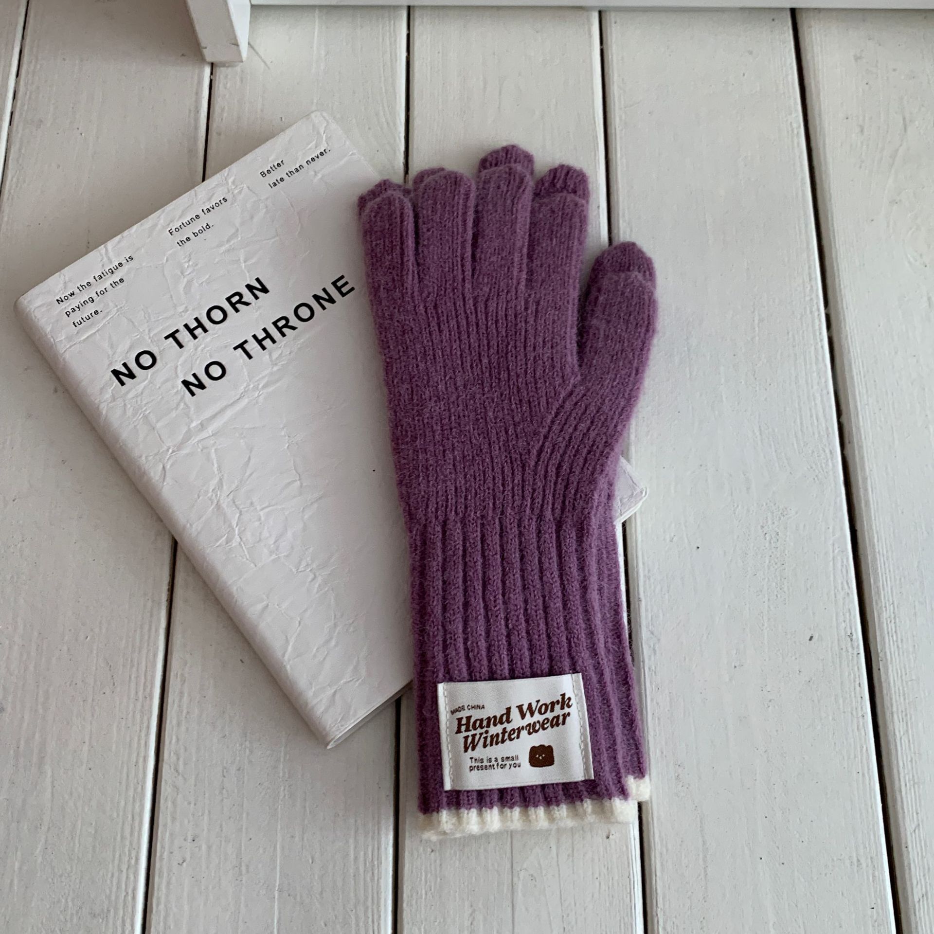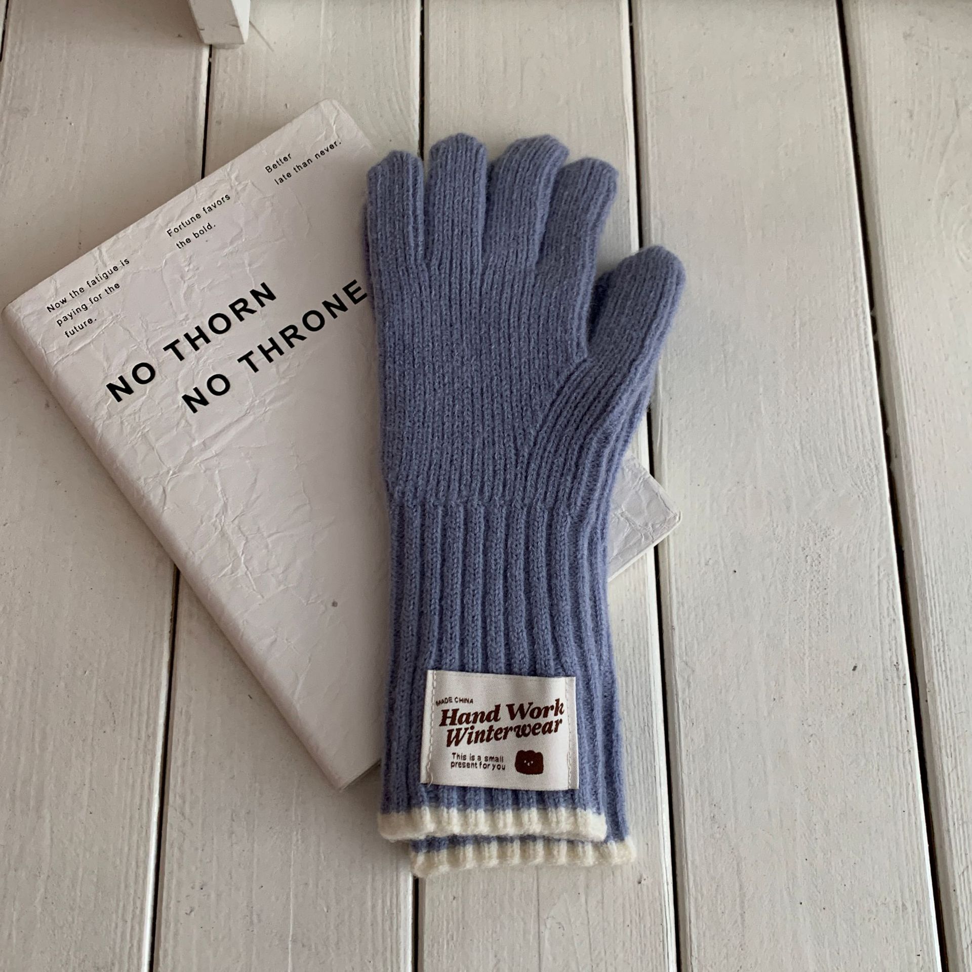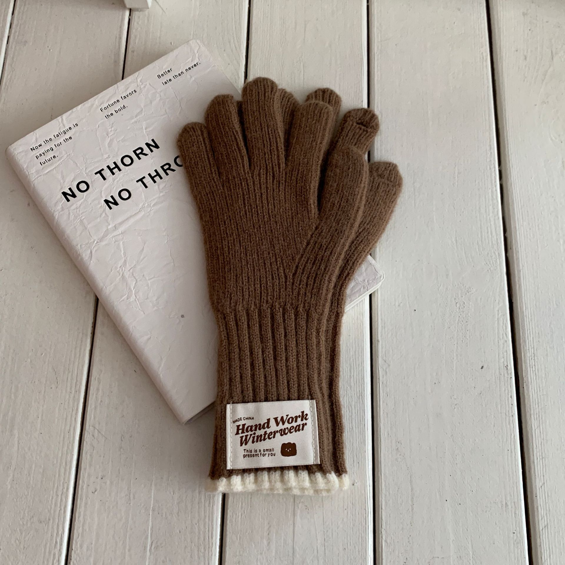 솔리드 컬러 하프 핑거 니트 울 장갑 대조적 인 색상 바느질 여성용 겨울 손가락 2024 새로운 터치 스크린 냉난방 및 보온 유지스토어 가기