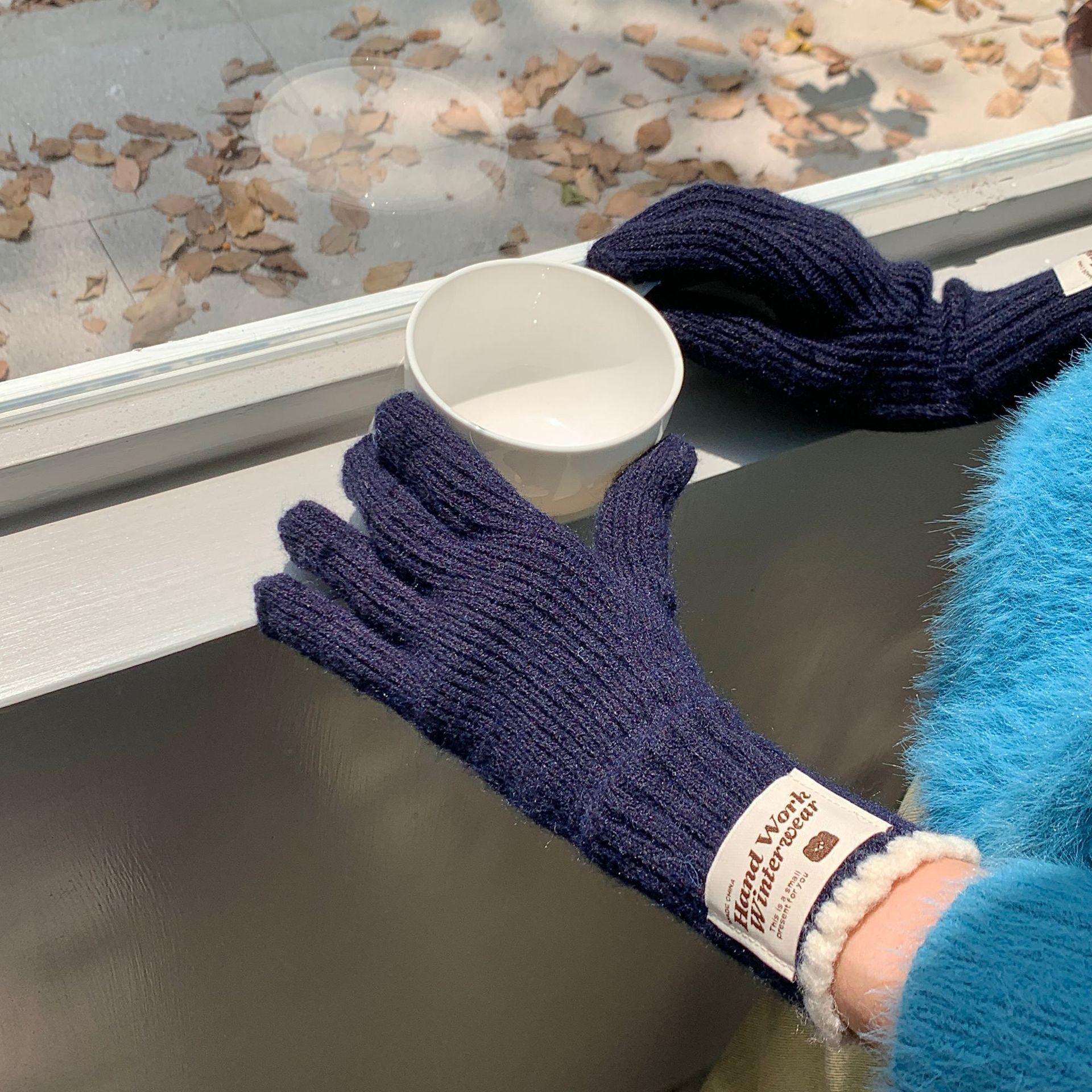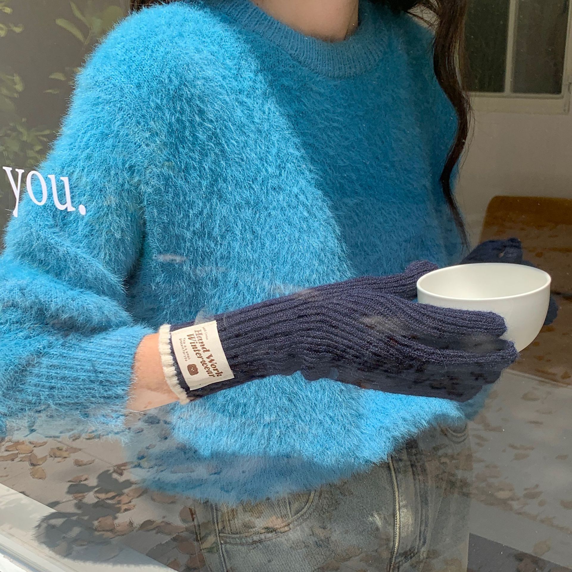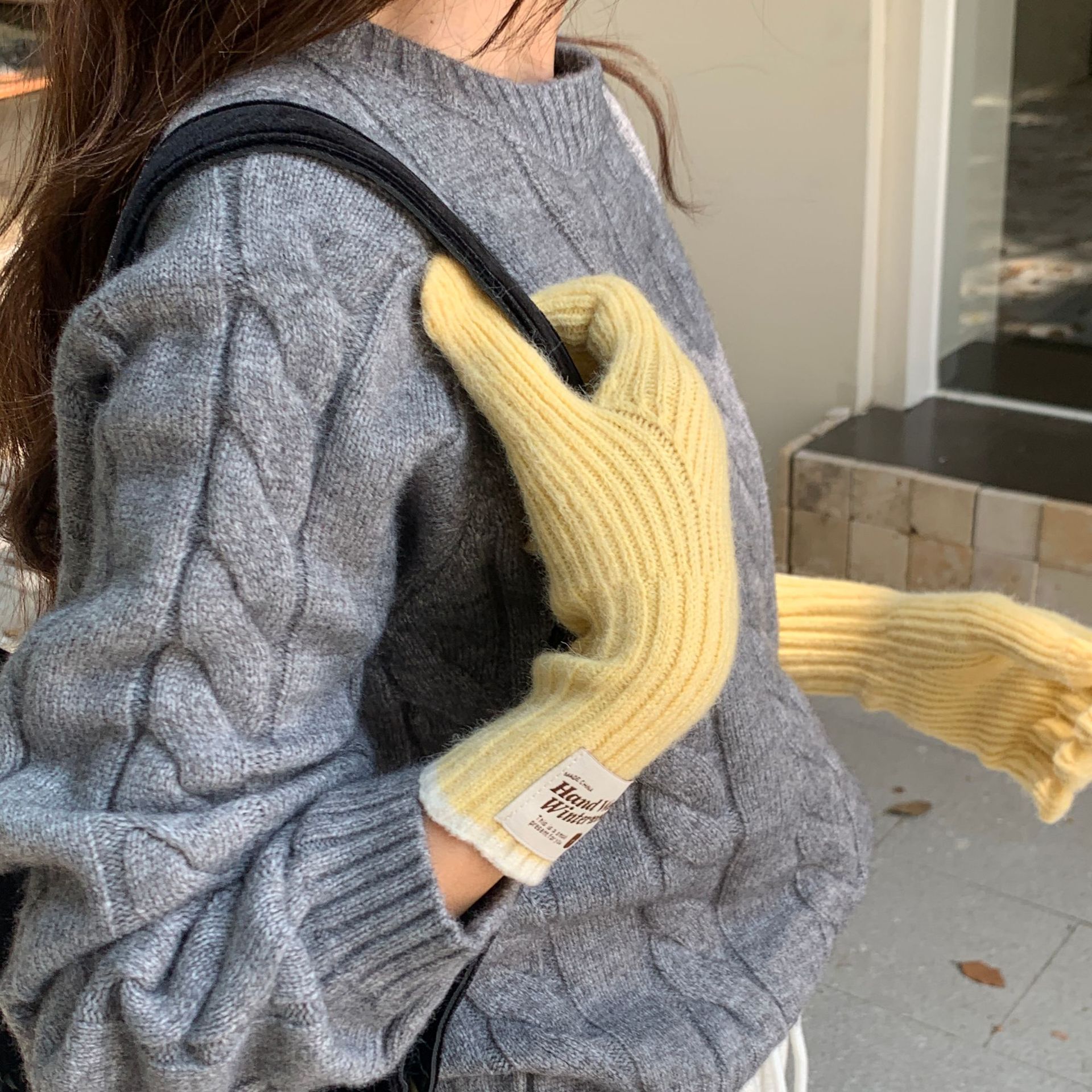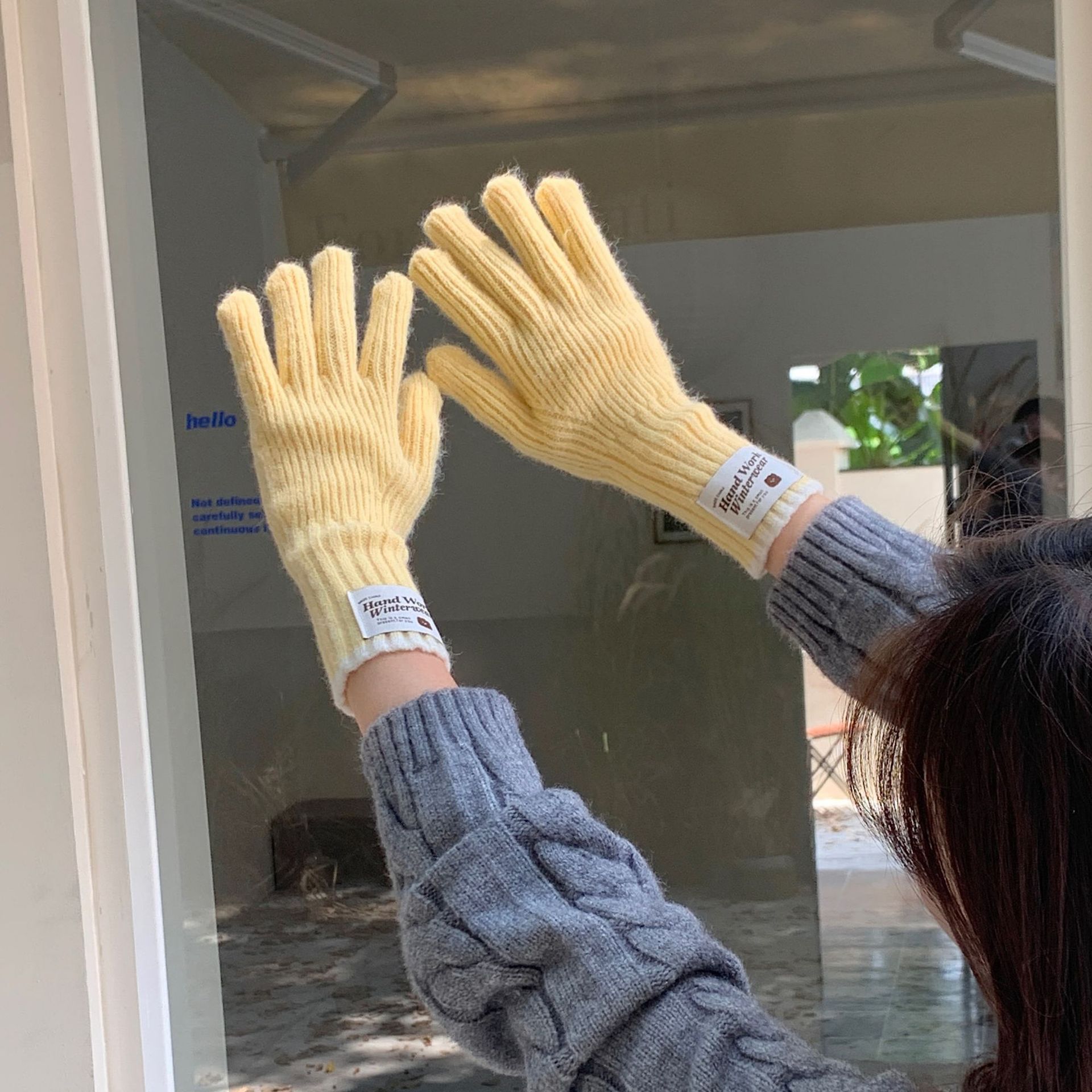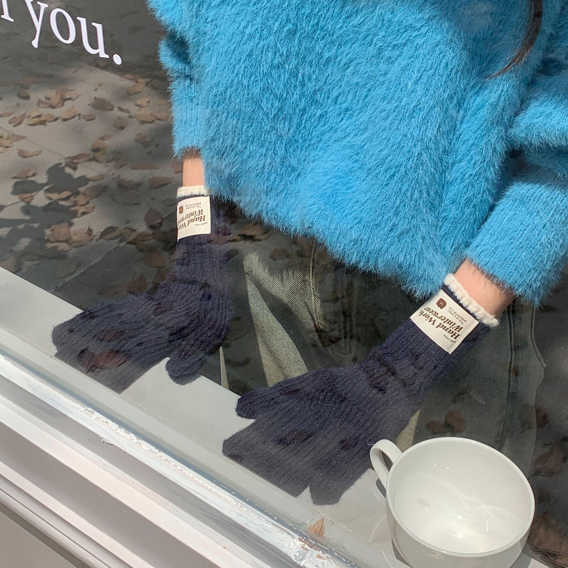 솔리드 컬러 하프 핑거 니트 울 장갑 대조적 인 색상 바느질 여성용 겨울 손가락 2024 새로운 터치 스크린 냉난방 및 보온 유지스토어 가기