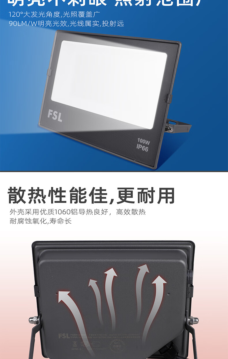 FSL 불산 조명 led 야외 방수 투광 조명 사이트 안뜰 공장 간판 스포트라이트 50W100W200W스토어 가기