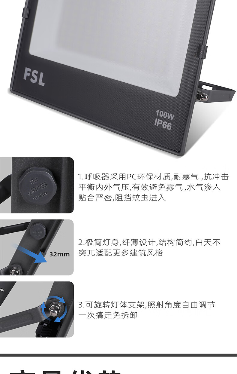 FSL 불산 조명 led 야외 방수 투광 조명 사이트 안뜰 공장 간판 스포트라이트 50W100W200W