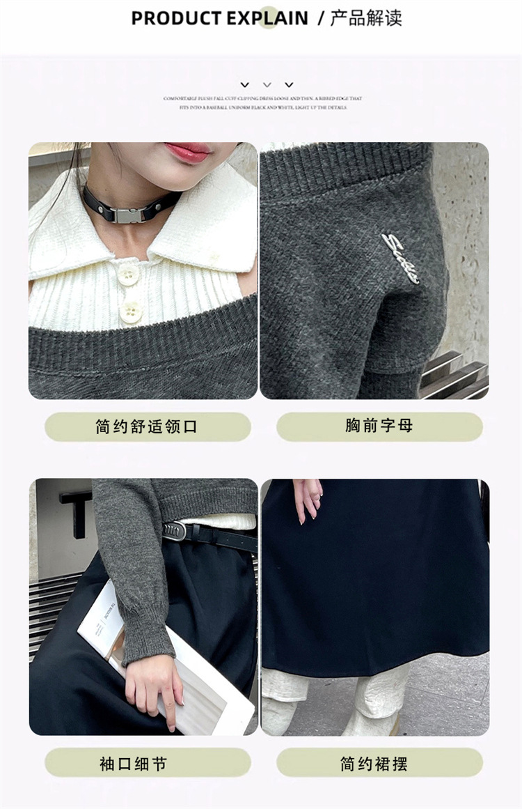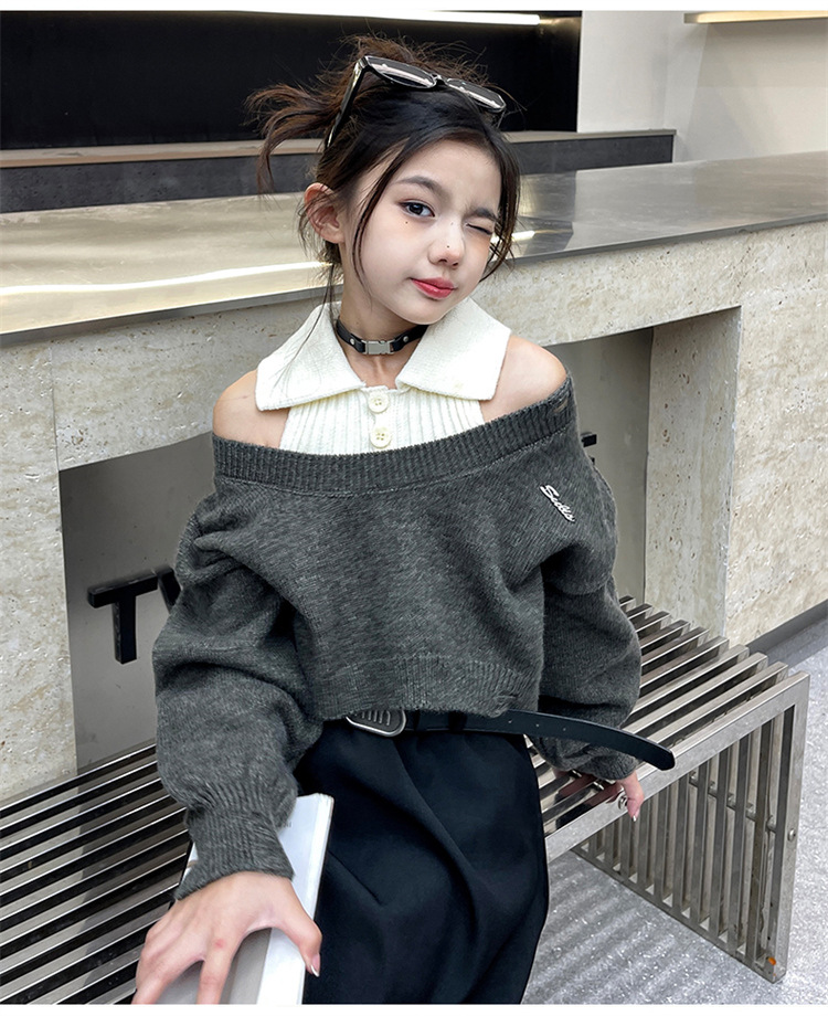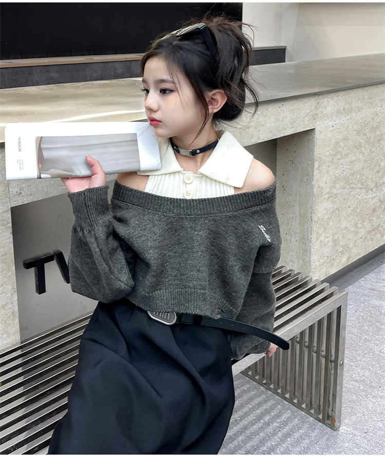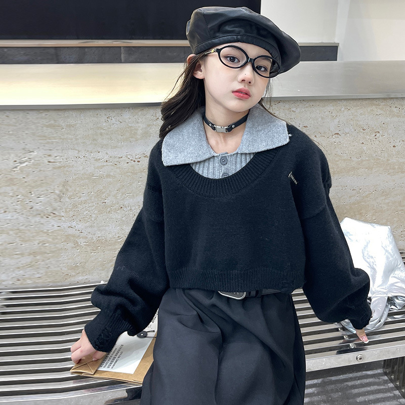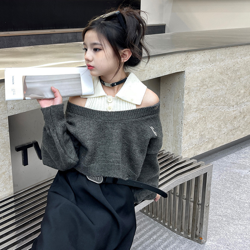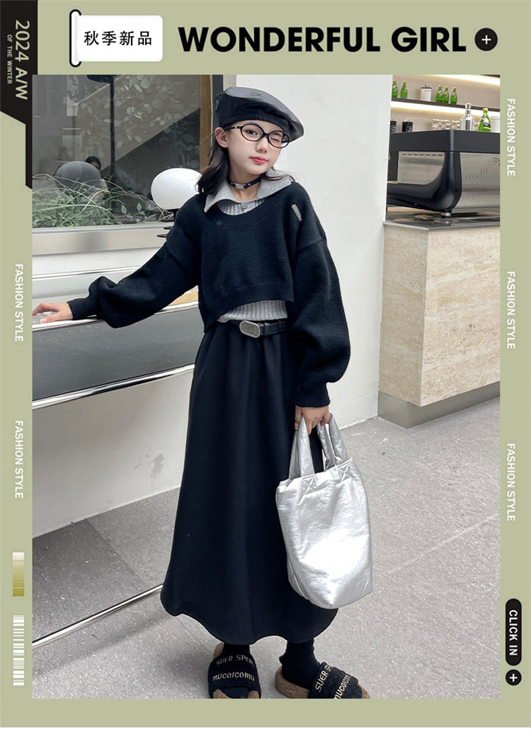 소녀 스웨터 세트 봄과 가을 새로운 니트 홀 스웨터 옷깃 재킷 반쪽 길이 원피스 투피스 아동복스토어 가기