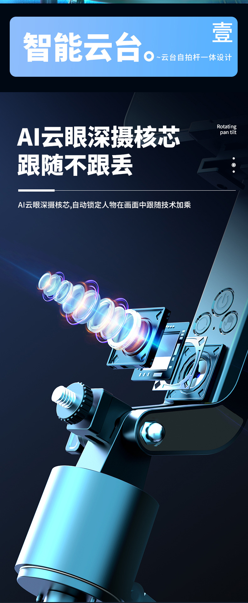 Q515TK 짐벌 AI 스마트 얼굴 추적 셀카봉 휴대폰 범용 라이브 방송 4각 스탠드 뷰티 조명스토어 가기