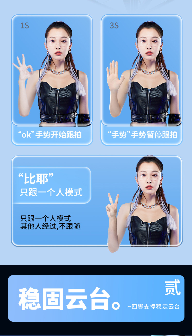 • 블랙 알루미늄 합금 짐벌 셀카봉 AI 스마트 추적 + 보관 가방