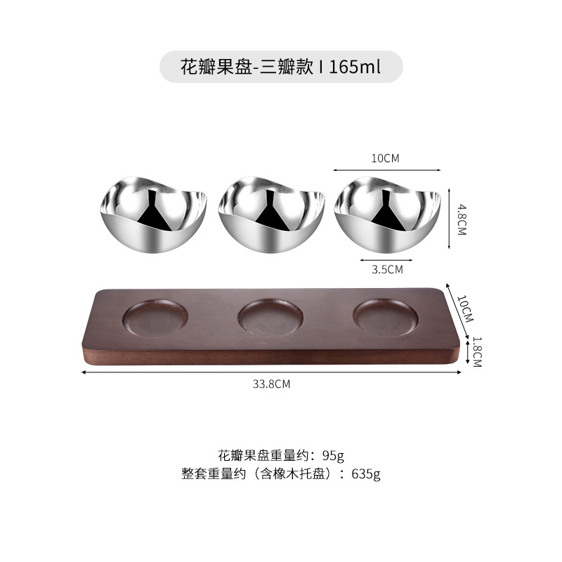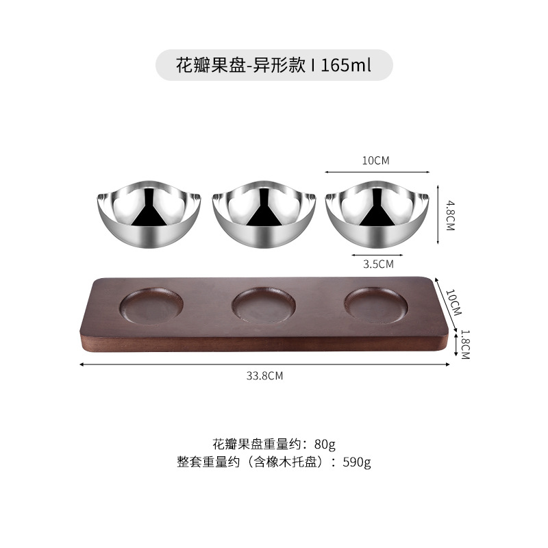 • 스테인리스 꽃잎 과일 접시(특수형) + 참나무 트레이 [세트]
