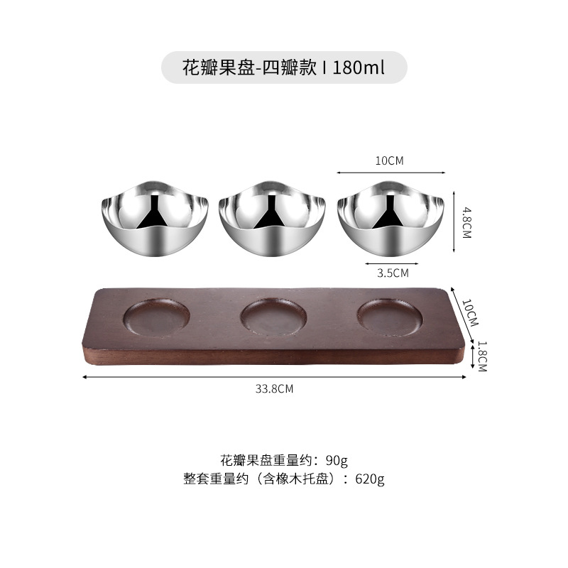 • 스테인리스 꽃잎 과일접시(4장형) + 참나무쟁반[세트]