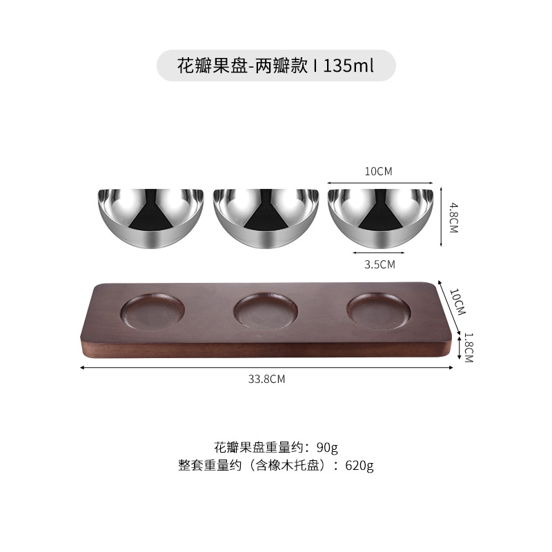 • 스테인리스 꽃잎 과일접시(두잎형) + 참나무쟁반[세트]