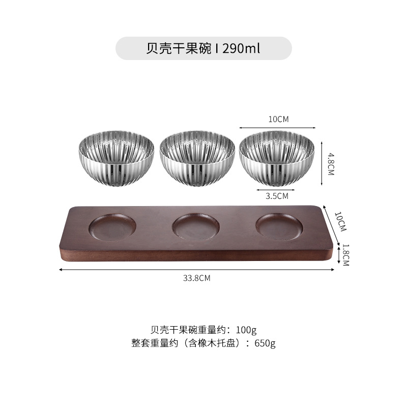 • 스테인레스 쉘 말린 과일 그릇 + 참나무 트레이 [세트]
