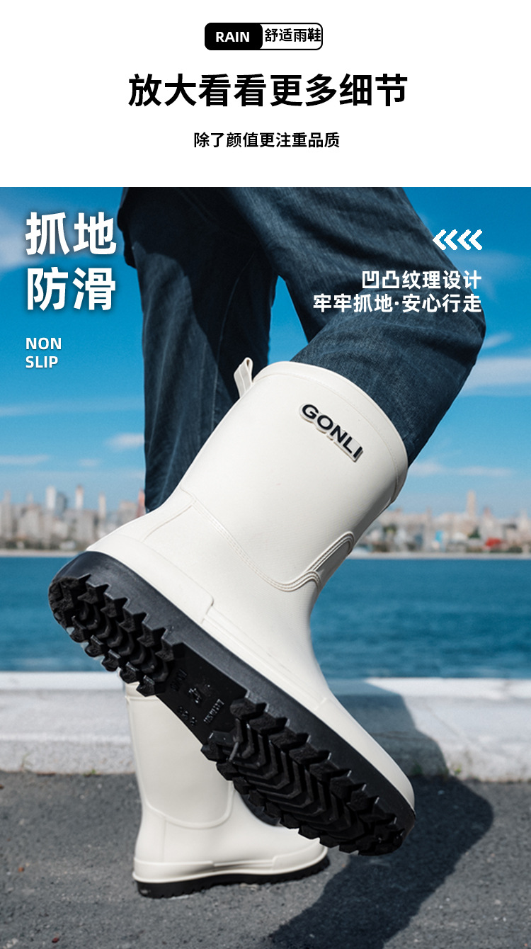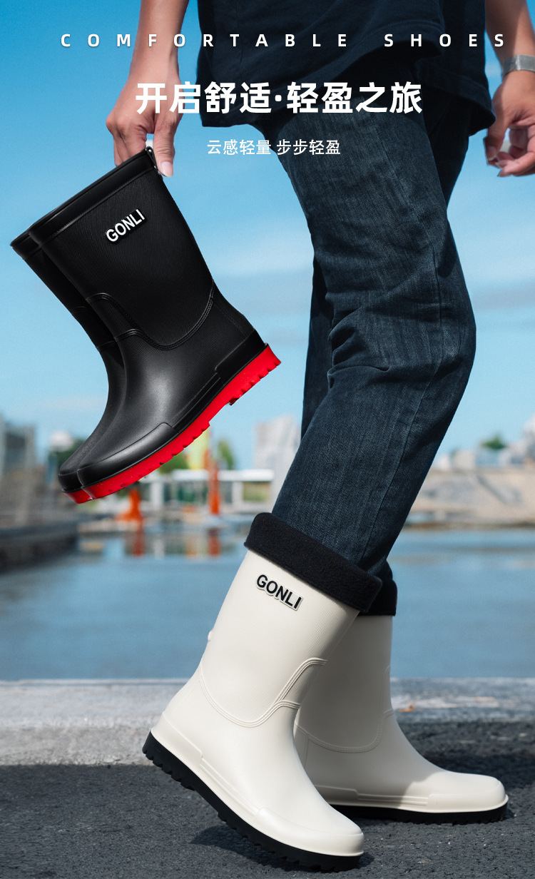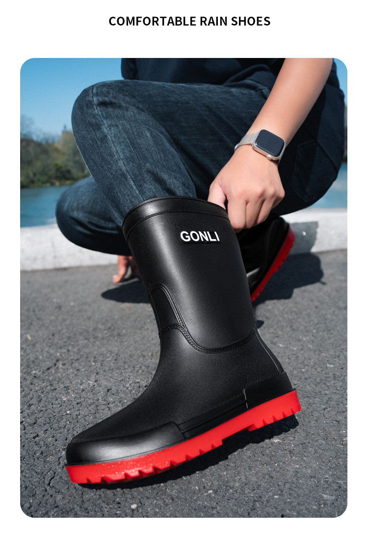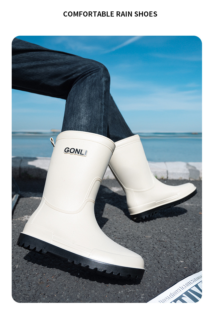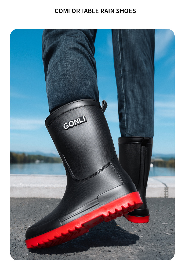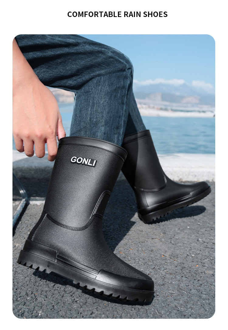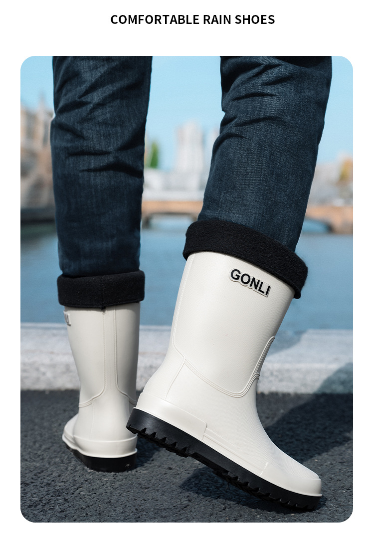 벨트 미드 튜브 장화 남성용 장화 방수 짧은 튜브 오버 슈즈 고무 신발 미끄럼 방지 방수 방수 방수 방수 방수 방수 방수 방수 워터 부츠 따뜻한 물 신발스토어 가기