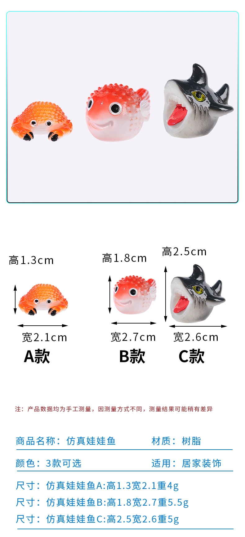 해양 동물 마이크로 풍경 장식품 물고기 탱크 수족관 액세서리 시뮬레이션 귀여운 검은 상어 게 물고기 분재 장식스토어 가기