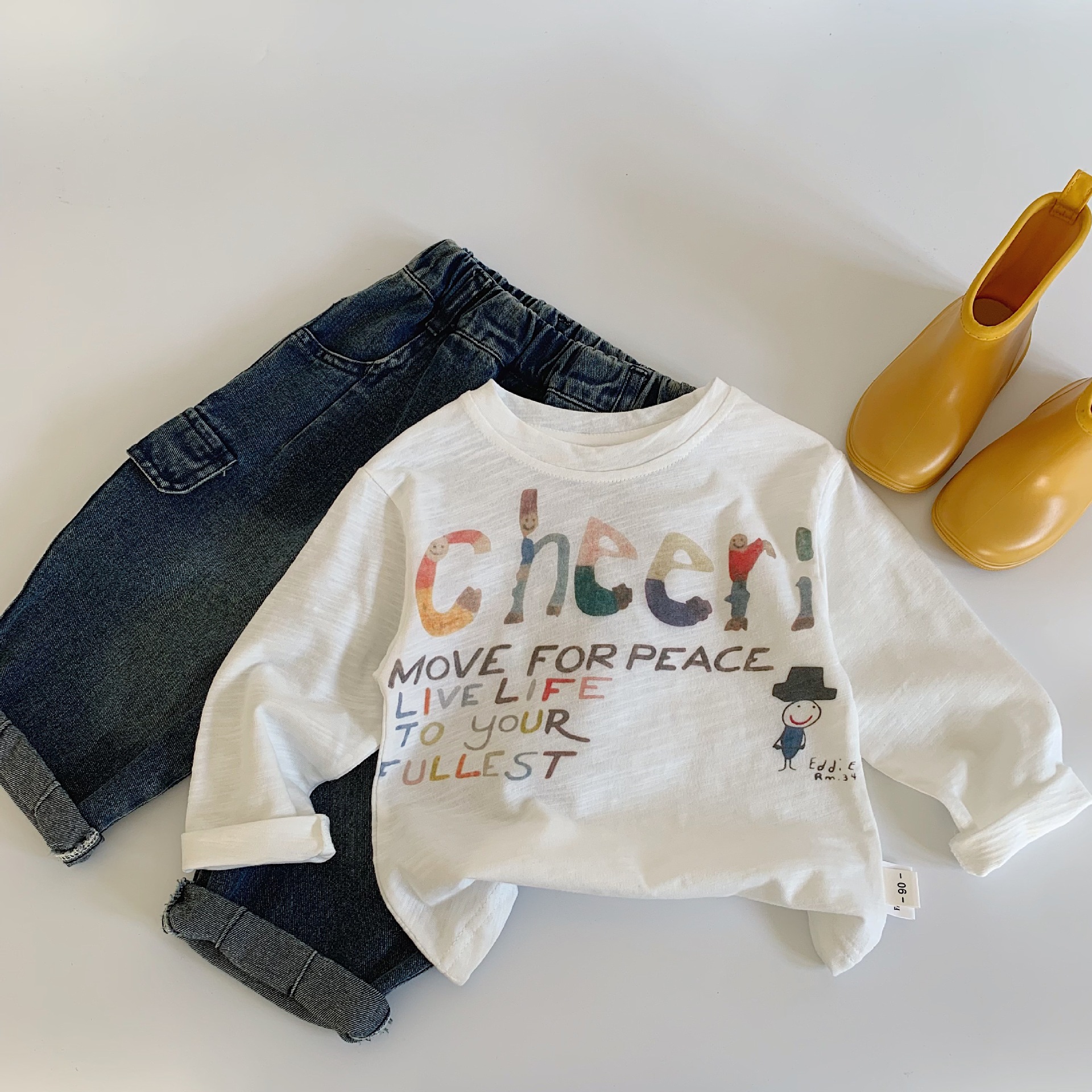 마이보 어린이 티셔츠 2026 봄 가을 신상 남아 여아 디지털 문자 프린트 라운드넥 베이스 레이어 캐주얼 상의