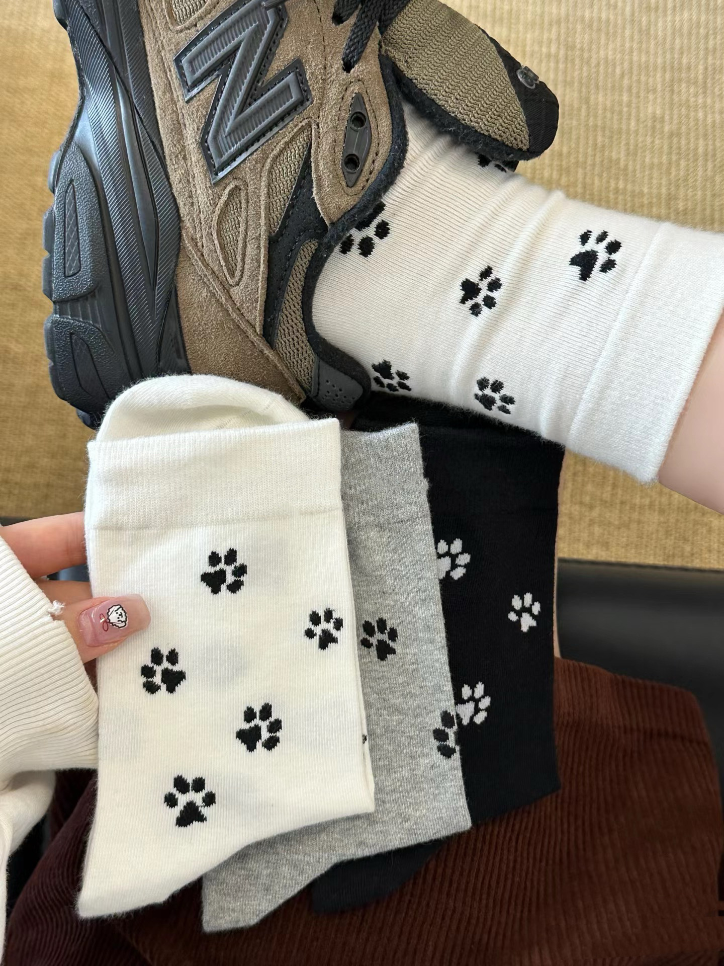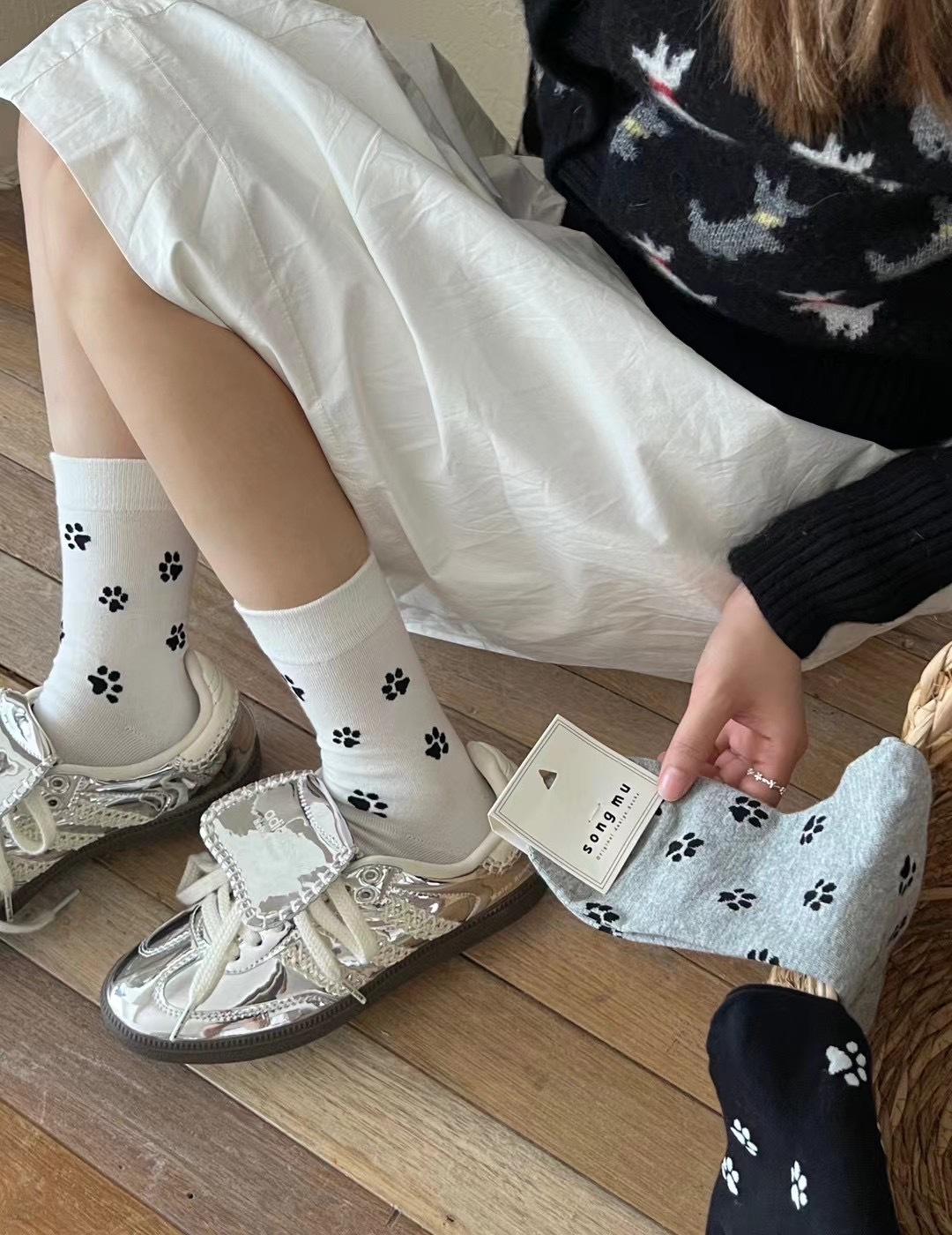 秋冬新品songmu韩国ins灰色丝绒蝴蝶结雪花百搭潮袜棉无骨中筒袜 RMB:4.60