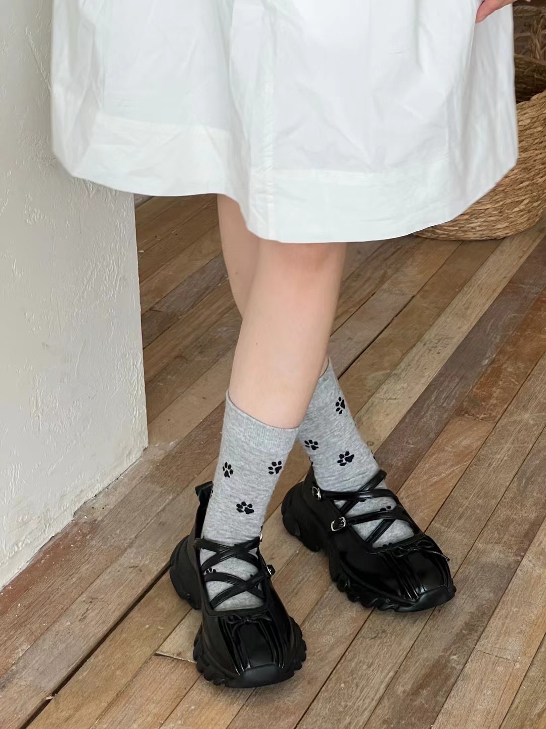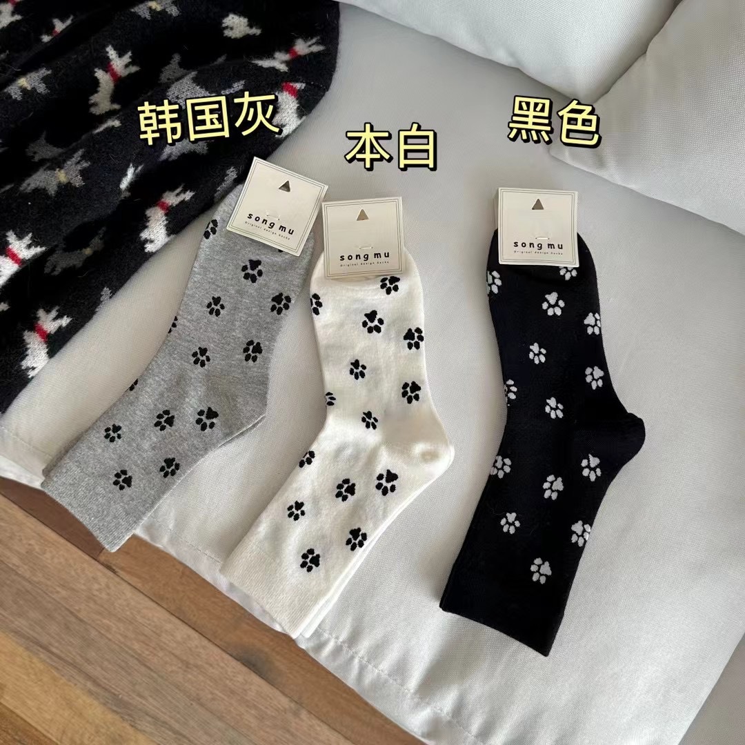 한국 스타일 Ins 귀여운 소녀 강아지 발톱 중간 양말 봄 가을 올 매치 퓨어 코튼 사계절 쌓기 양말스토어 가기