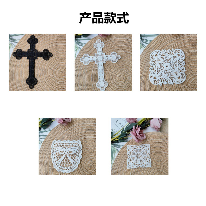 화이트 스퀘어 크로스 크라운 천 스티커 빈 패치 패브릭 액세서리 꽃 DIY 의류 레이스 액세서리스토어 가기