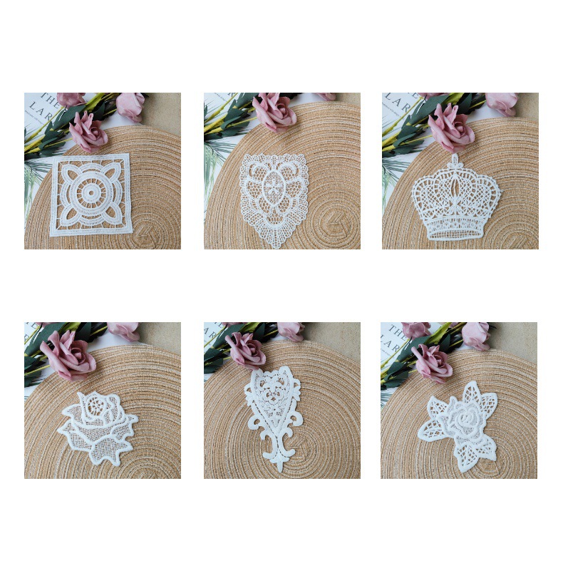 화이트 스퀘어 크로스 크라운 천 스티커 빈 패치 패브릭 액세서리 꽃 DIY 의류 레이스 액세서리