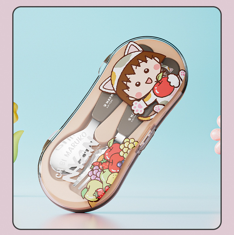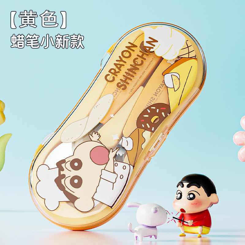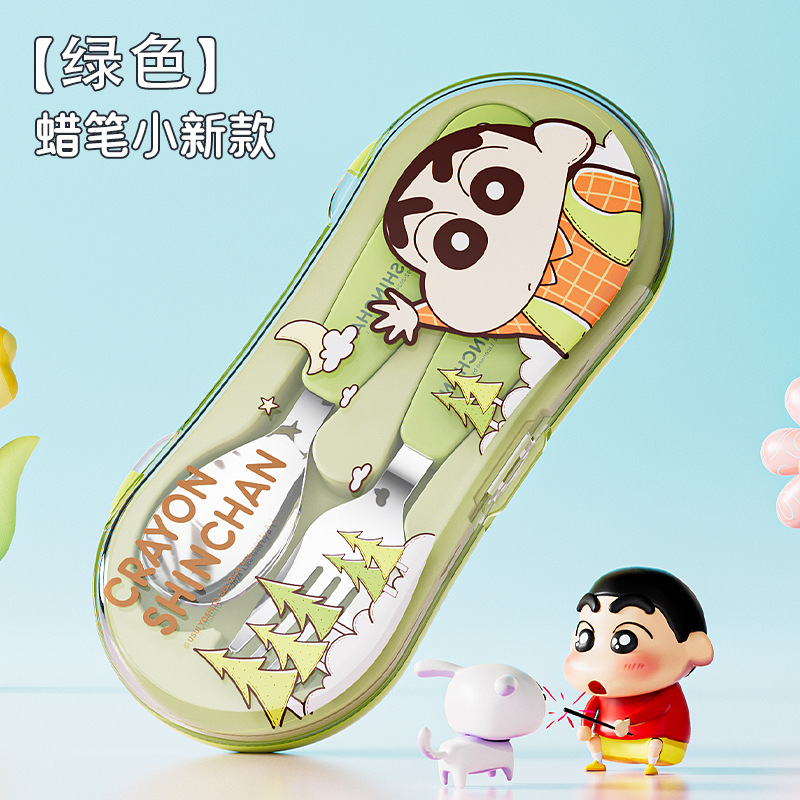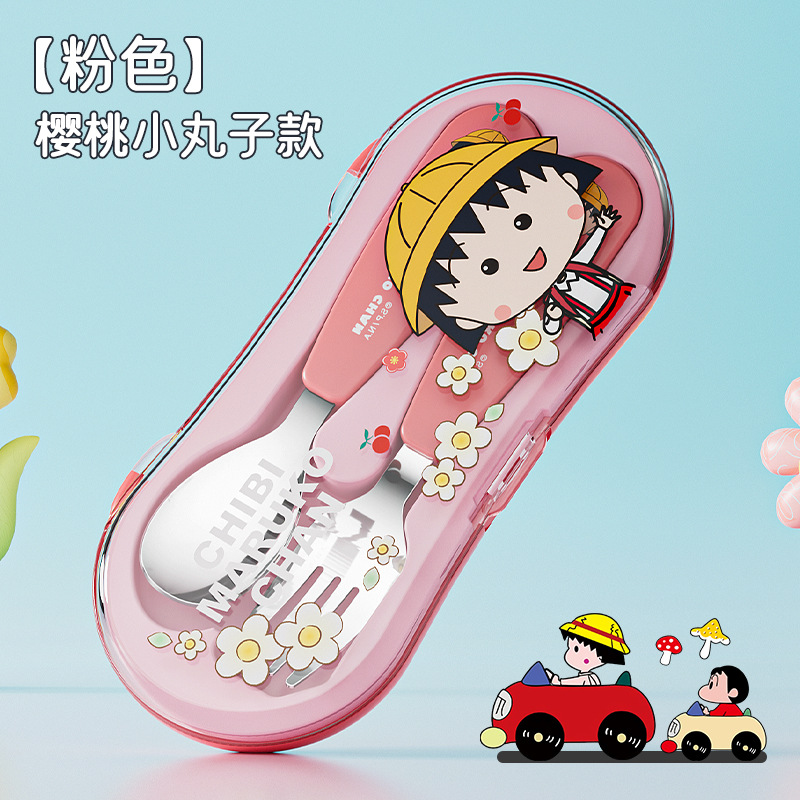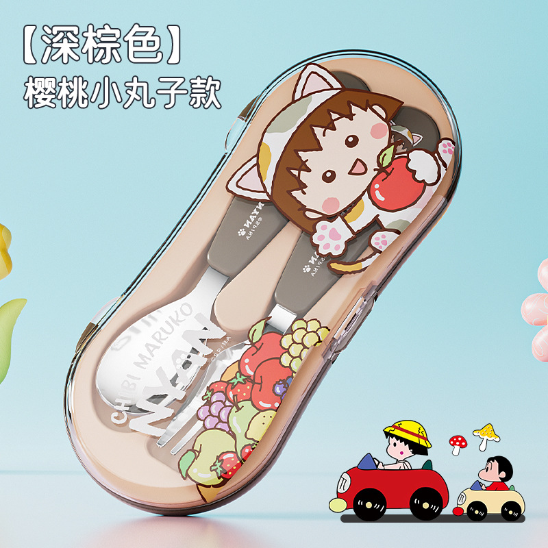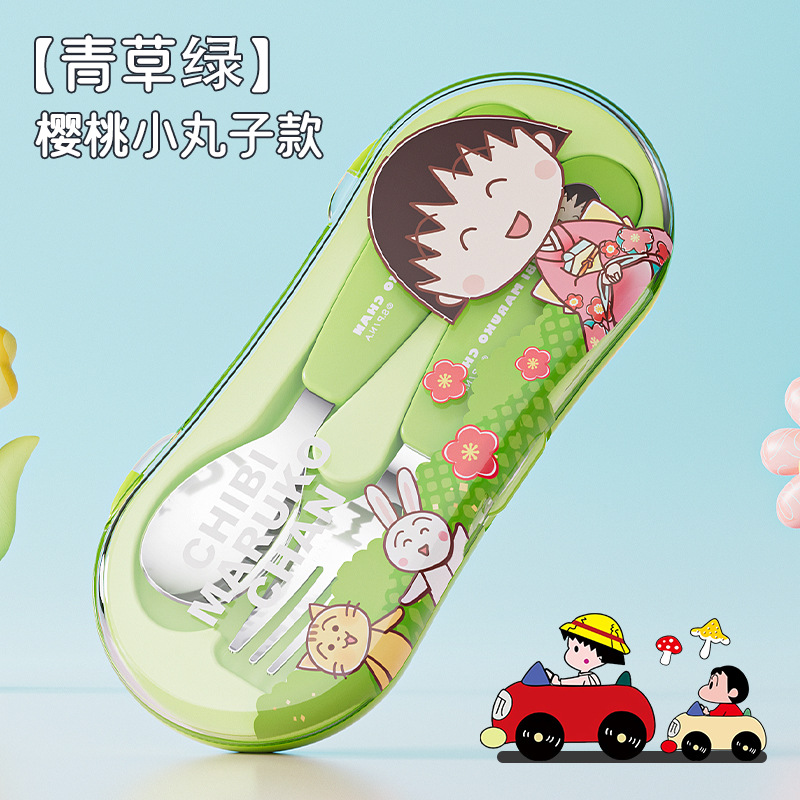 정품 304 스테인레스 스틸 크레용 신짱 스푼 및 포크 세트 치비 마루코 산리오 휴대용 식기 세트스토어 가기
