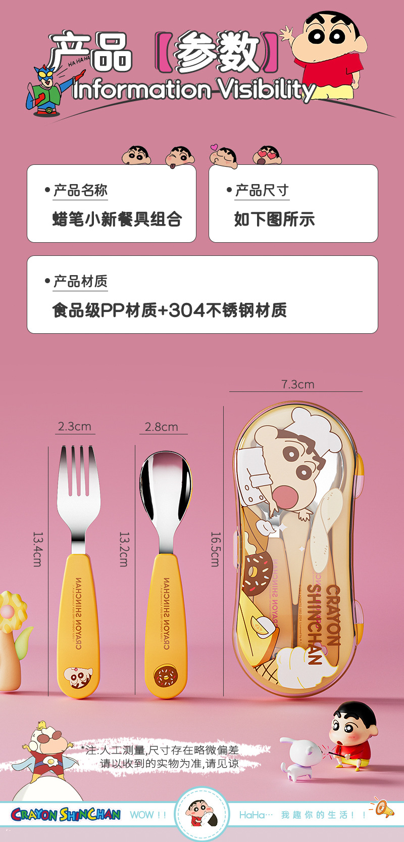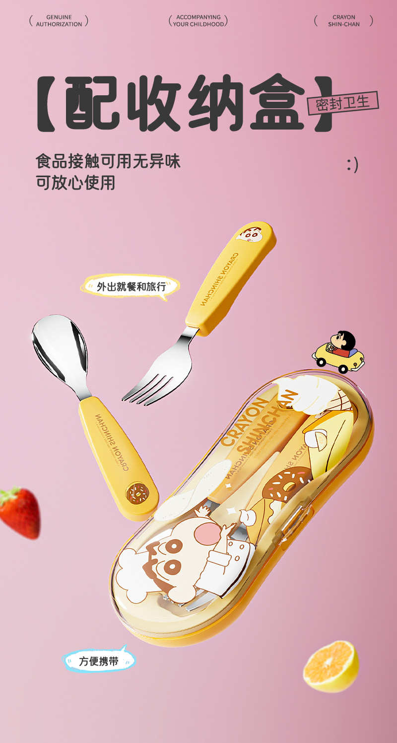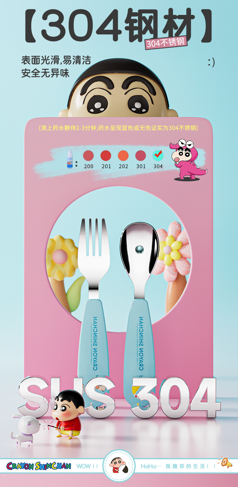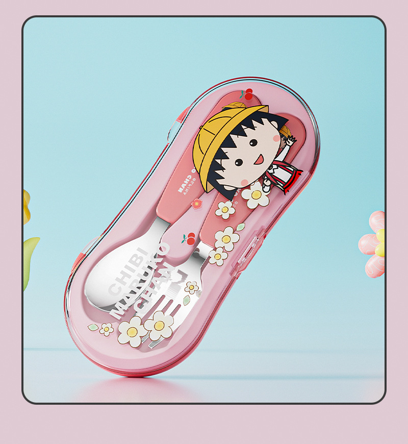 정품 304 스테인레스 스틸 크레용 신짱 스푼 및 포크 세트 치비 마루코 산리오 휴대용 식기 세트스토어 가기