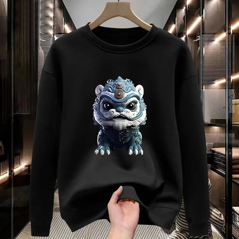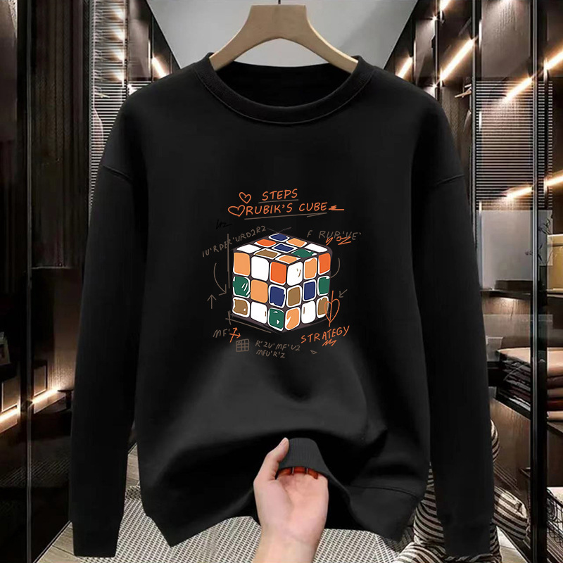 남성용 트렌디한 가을 겨울 스웨트셔츠, 청소년용 루즈핏 캐주얼 만능 라운드넥 프린트 스웨트셔츠 도매스토어 가기