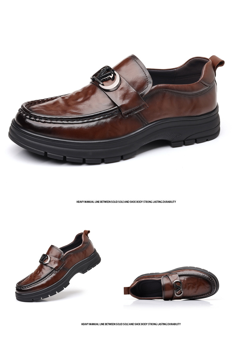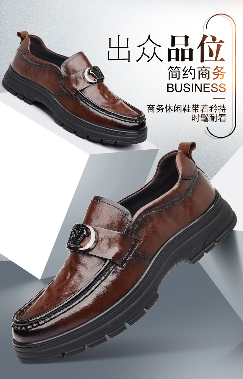 남성용 천연가죽 로퍼, 남성용 비즈니스 가죽신, 남성용 슬립온 캐주얼 가죽신, 경량 두꺼운 밑창 공장 도매 비니슈즈스토어 가기