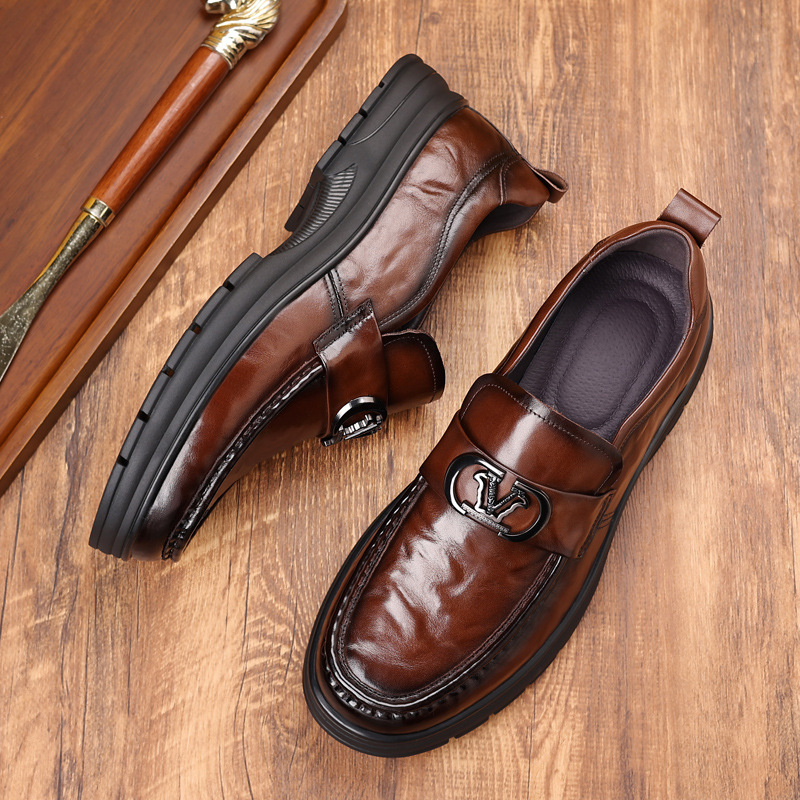 남성용 천연가죽 로퍼, 남성용 비즈니스 가죽신, 남성용 슬립온 캐주얼 가죽신, 경량 두꺼운 밑창 공장 도매 비니슈즈