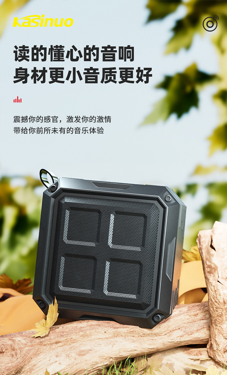 产品特点:内附尼龙挂绳,更适合户外运动携带,57mm大尺寸重低音喇叭单元,一听就上瘾的小钢炮音质,表现强悍,低音强劲有力不沉闷,高音不刺耳,音色细节丰富,5.0低功耗蓝牙,连接稳定,支持蓝牙通话,400mAh可充电电池,约2H续航持久,播放时长更持久。
