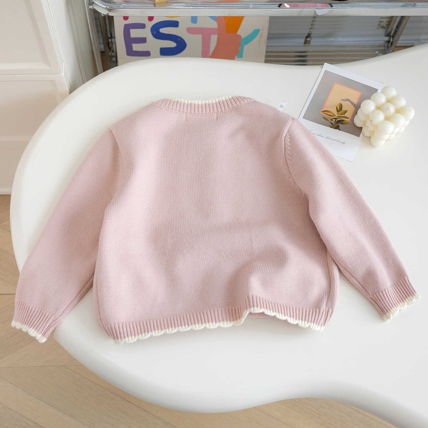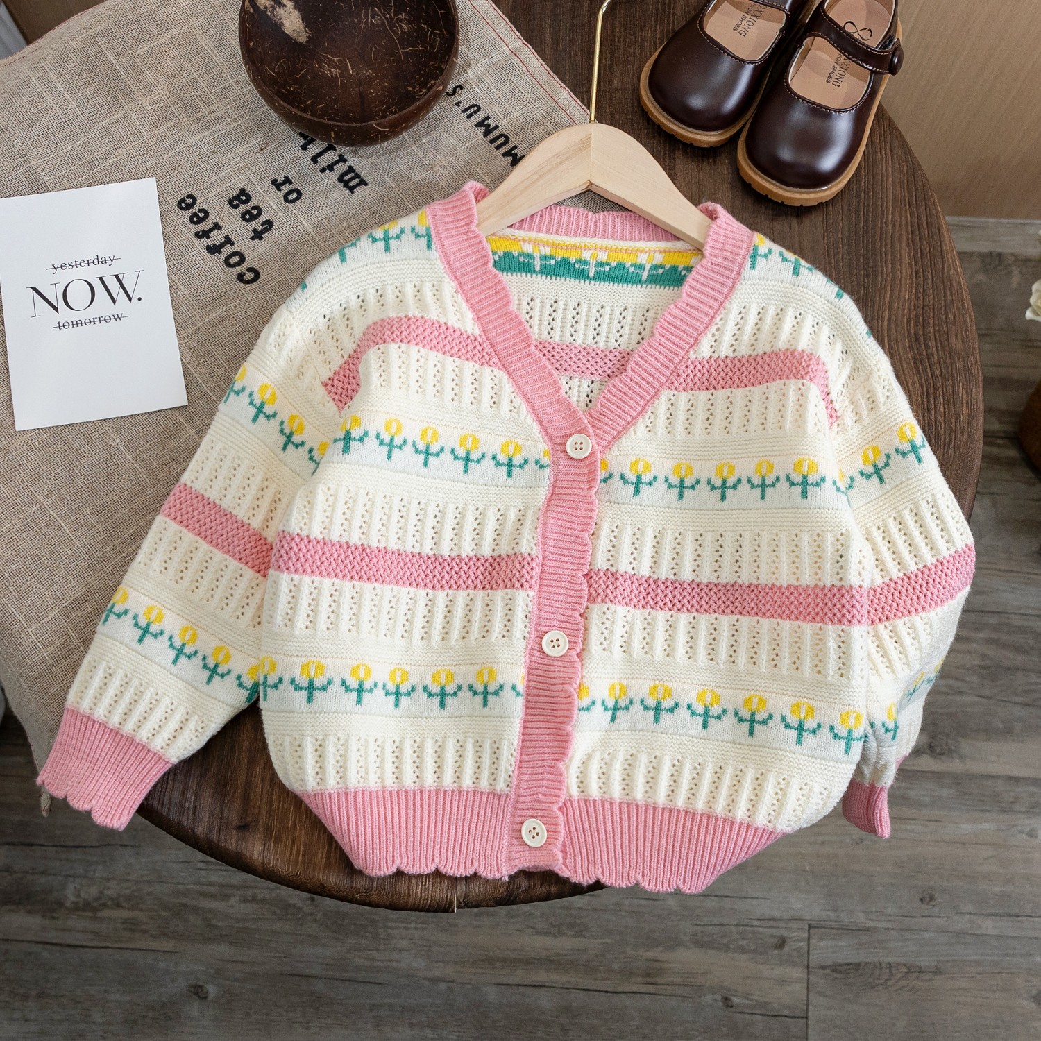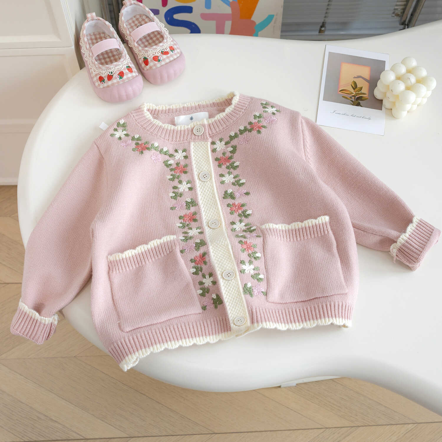 여자 꽃 귀여운 니트 탑 2025 가을 새로운 달콤한 수 놓은 스플 라이스 아기 소녀 봄, 가을 니트 카디건