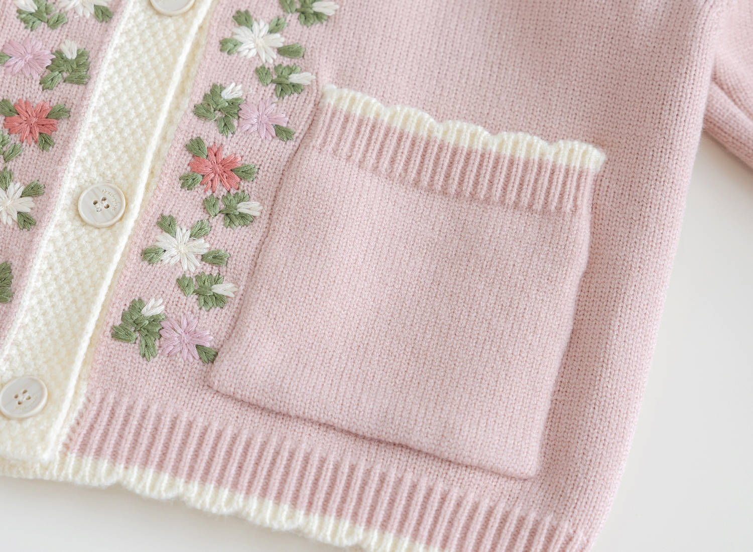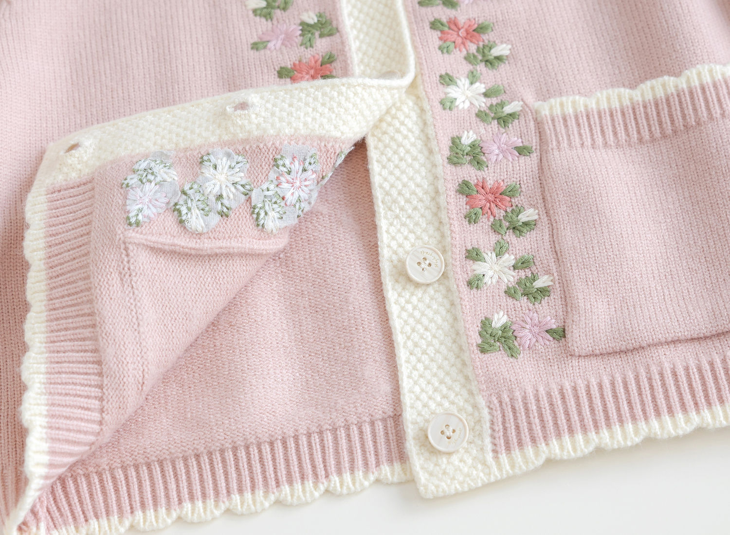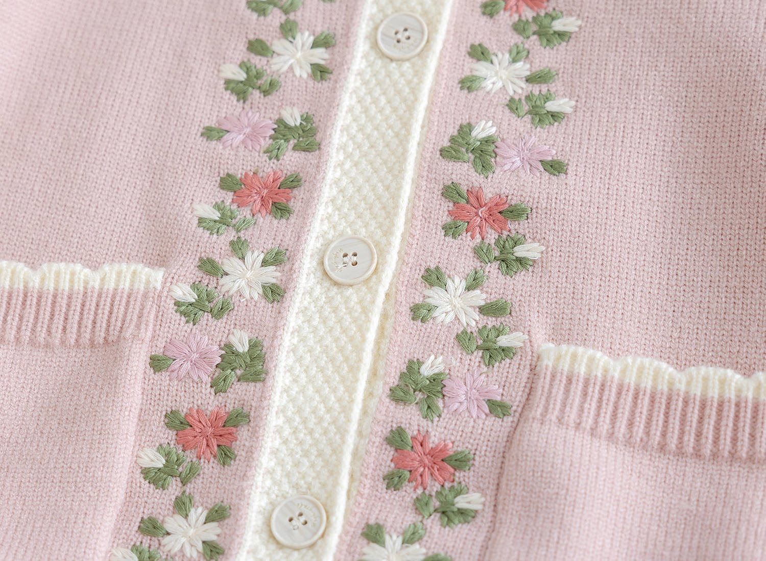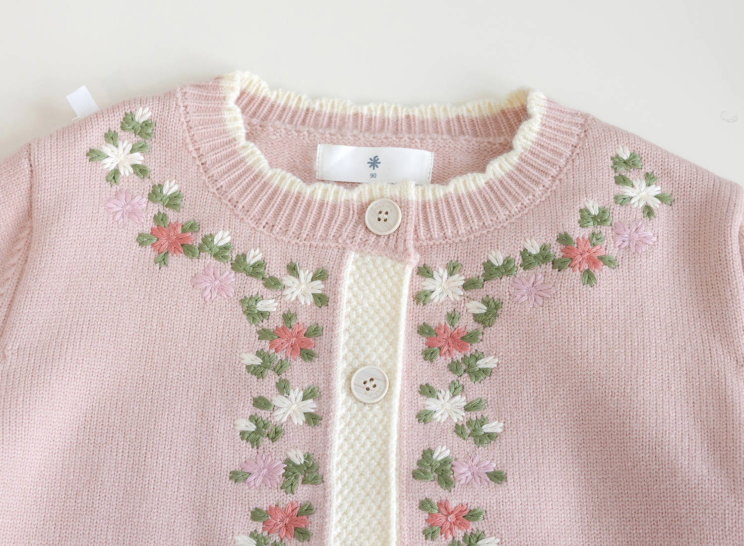 여자 꽃 귀여운 니트 탑 2025 가을 새로운 달콤한 수 놓은 스플 라이스 아기 소녀 봄, 가을 니트 카디건