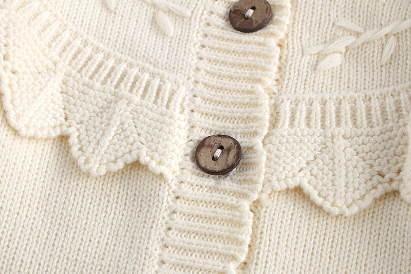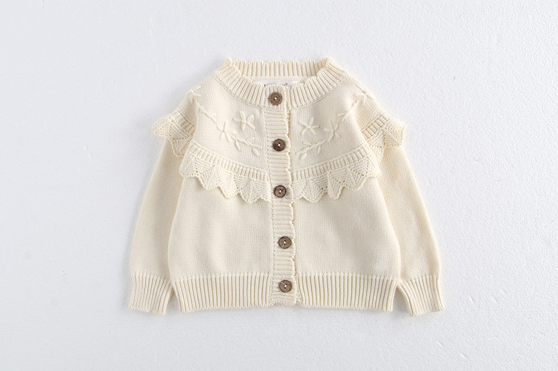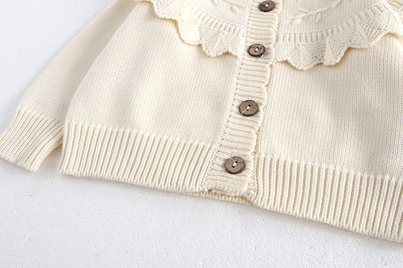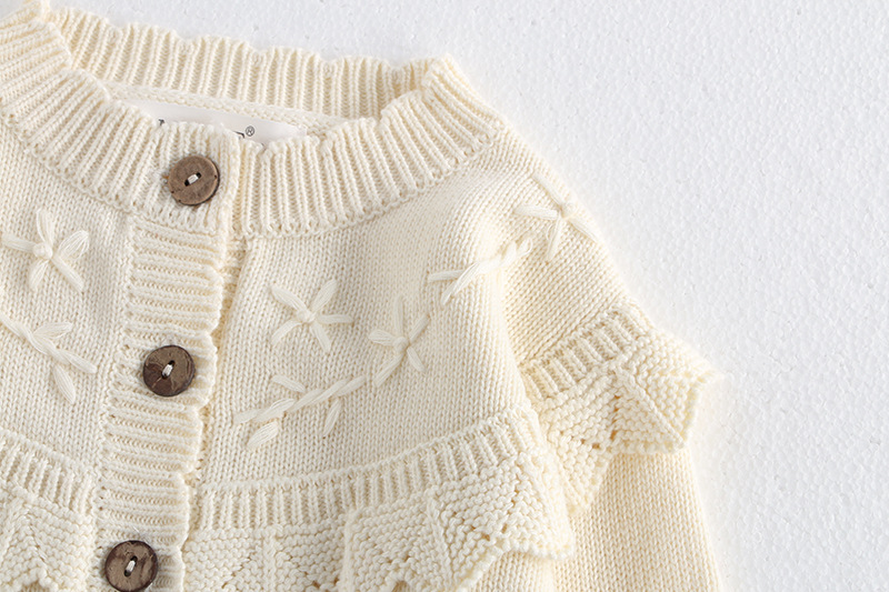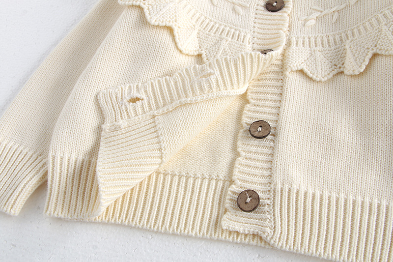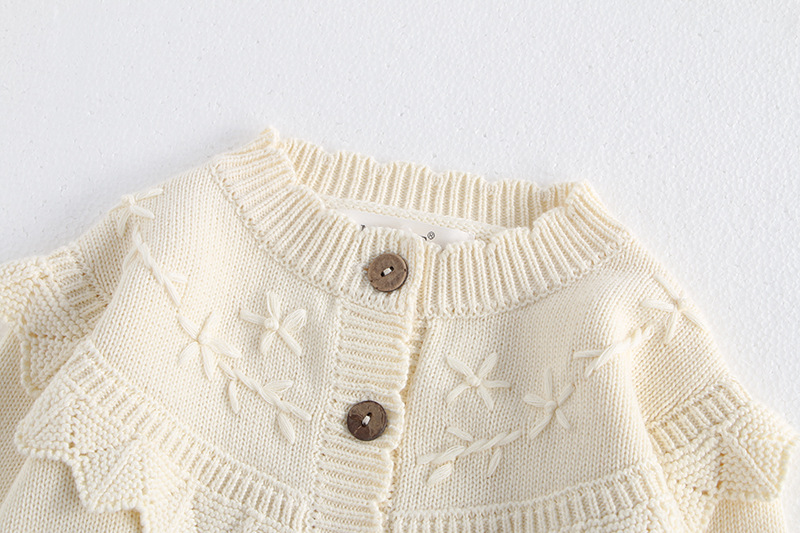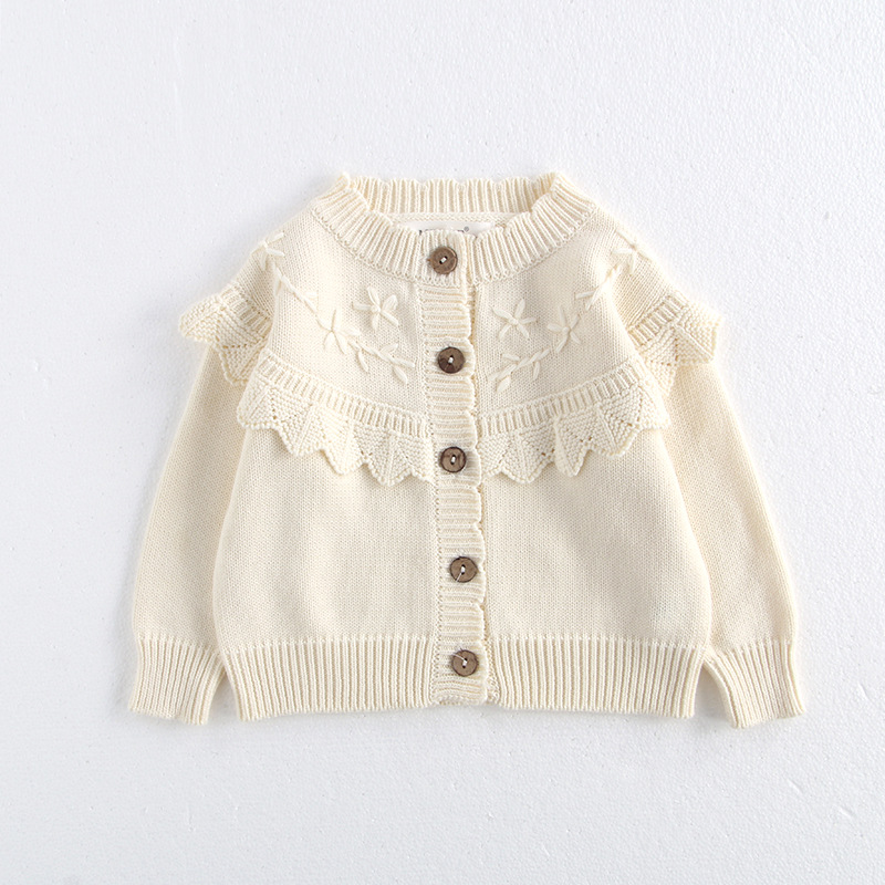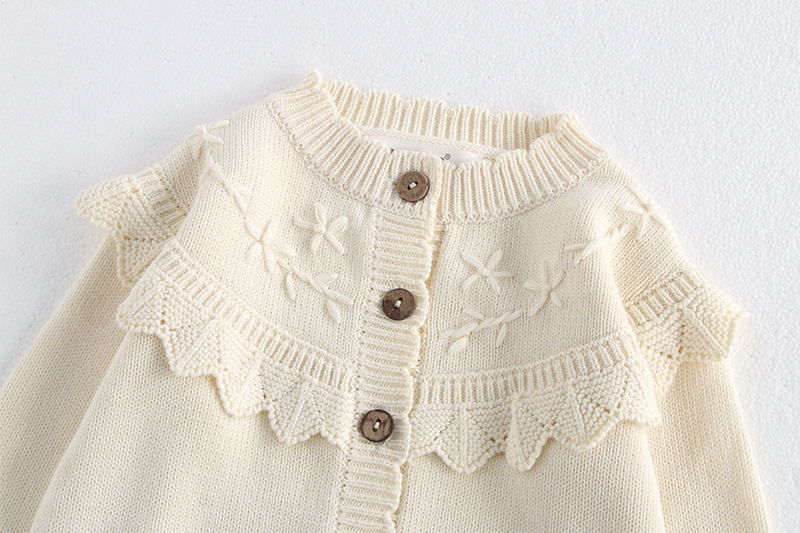소녀 가을 2024 아기 소녀 0-3 세 손 수 놓은 러플 니트 코트 면사 스웨터 카디건