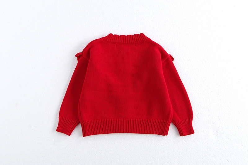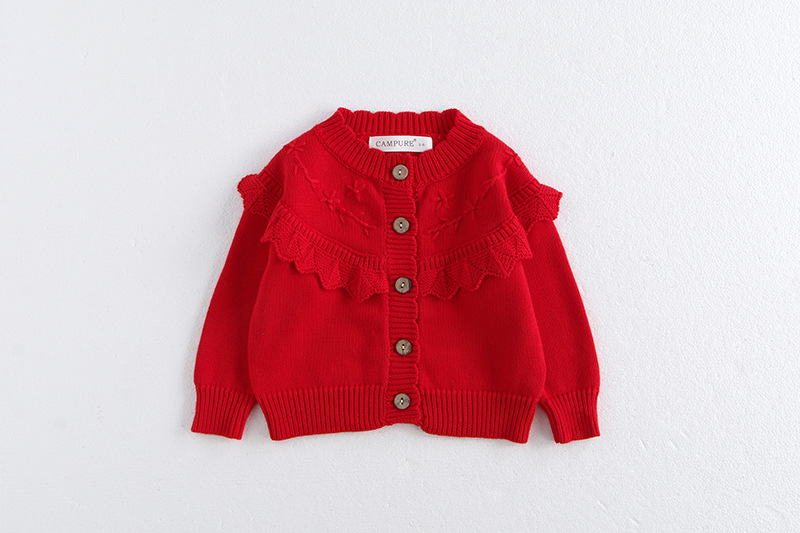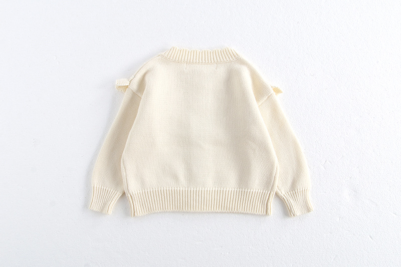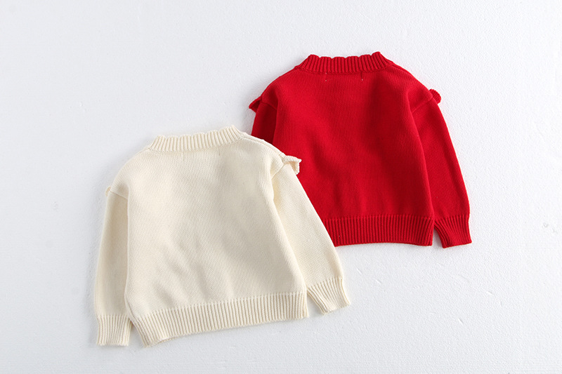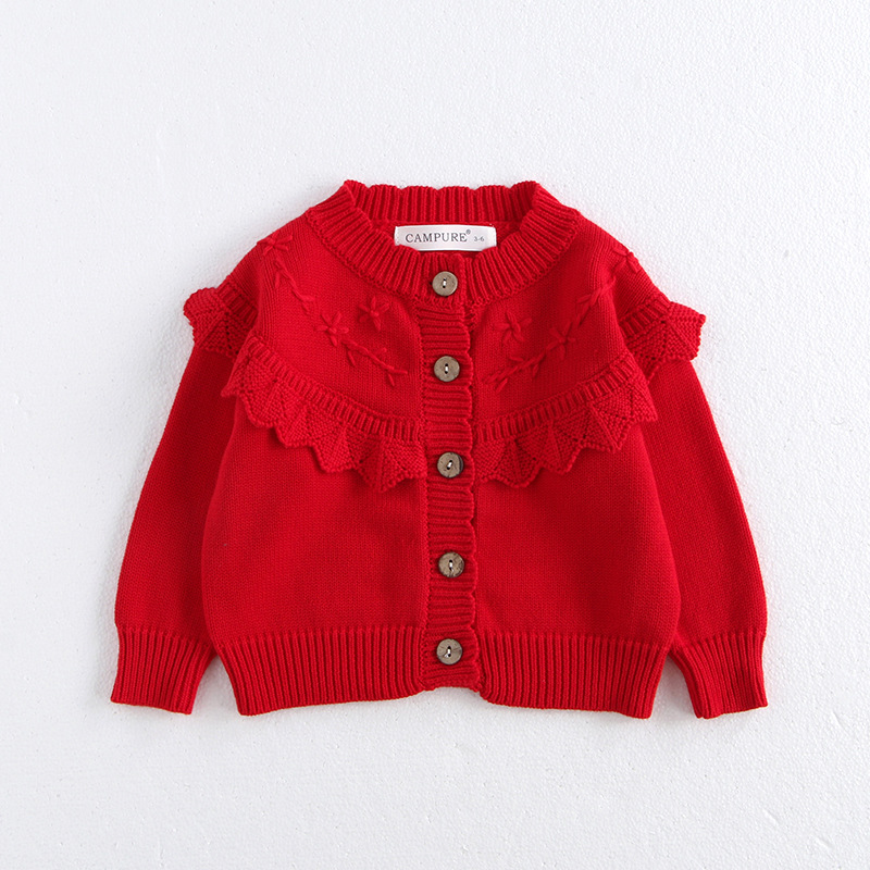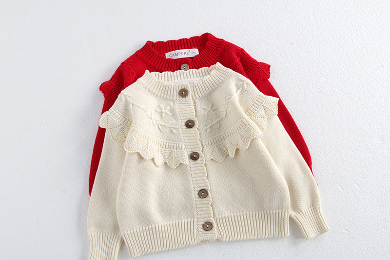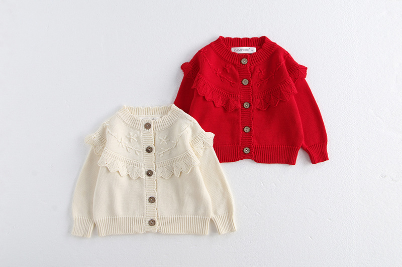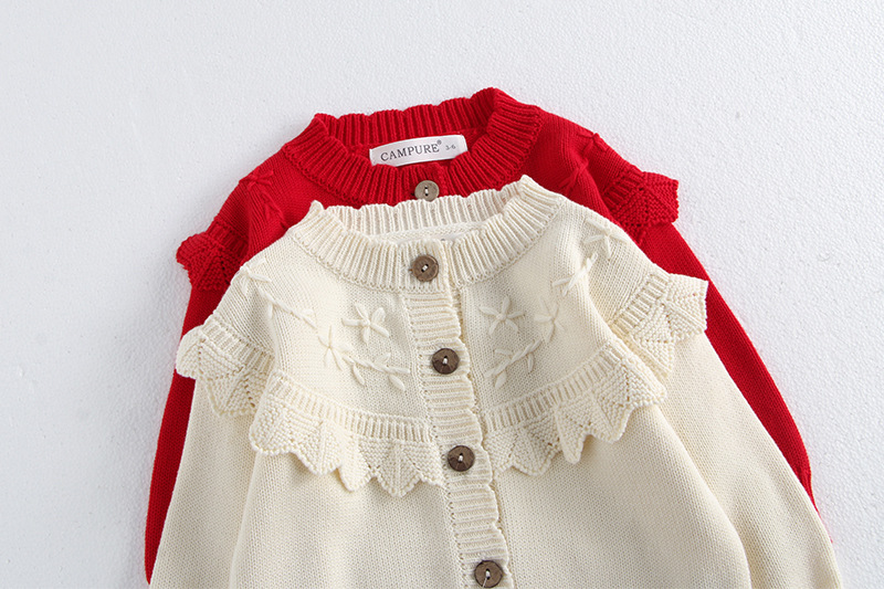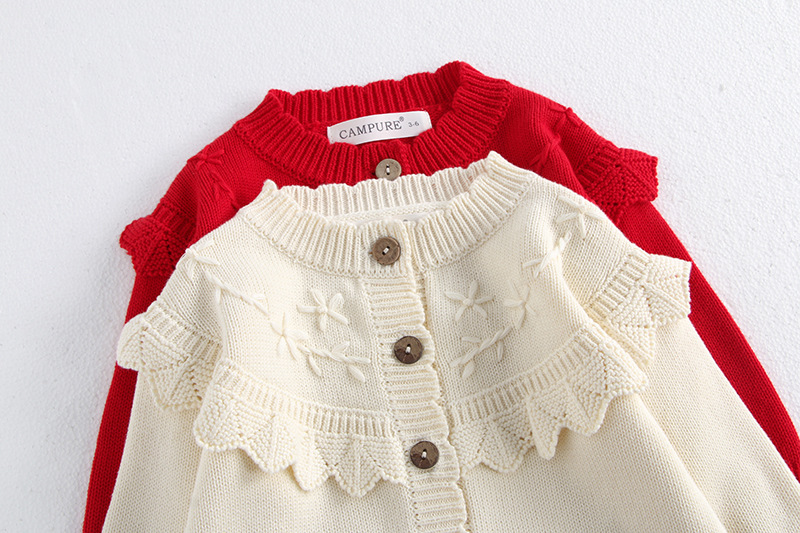 소녀 가을 2024 아기 소녀 0-3 세 손 수 놓은 러플 니트 코트 면사 스웨터 카디건