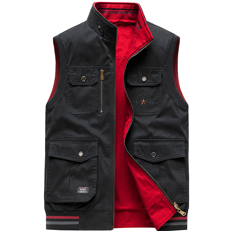 야외 캐주얼 조끼 멀티 포켓 조끼 봄과 가을 양면 허리 코트 느슨한 면 민소매 재킷 중년 및 노인 남성