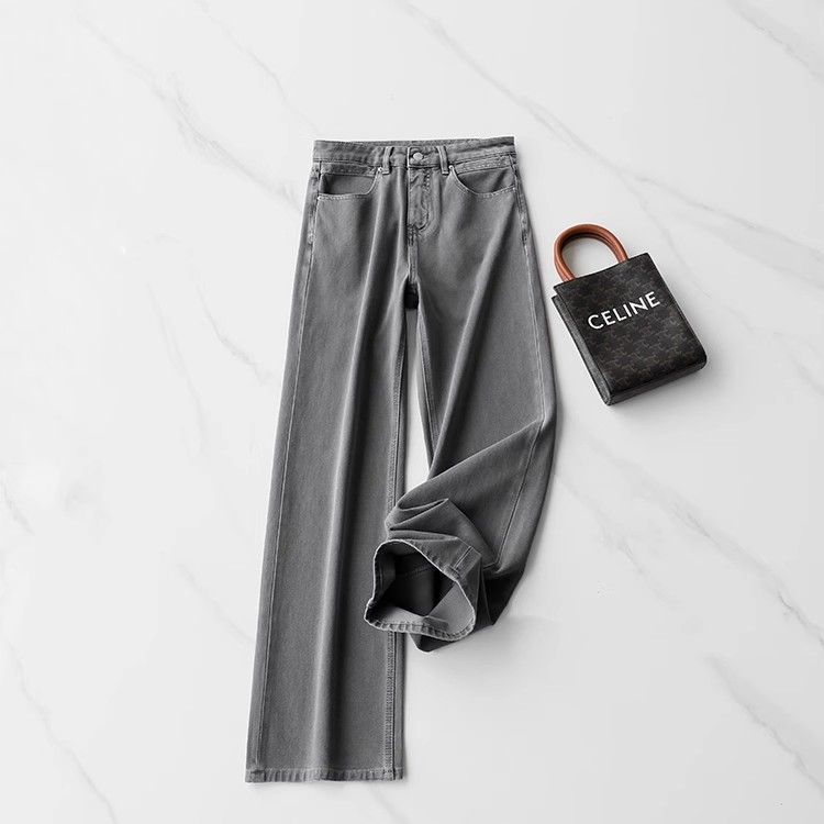 통근 빈티지 드레스 고정 염료 세척 4 면 편안한 루즈 스트레이트 캐주얼 올 매치 데님 바지 여자 가을 뉴스토어 가기