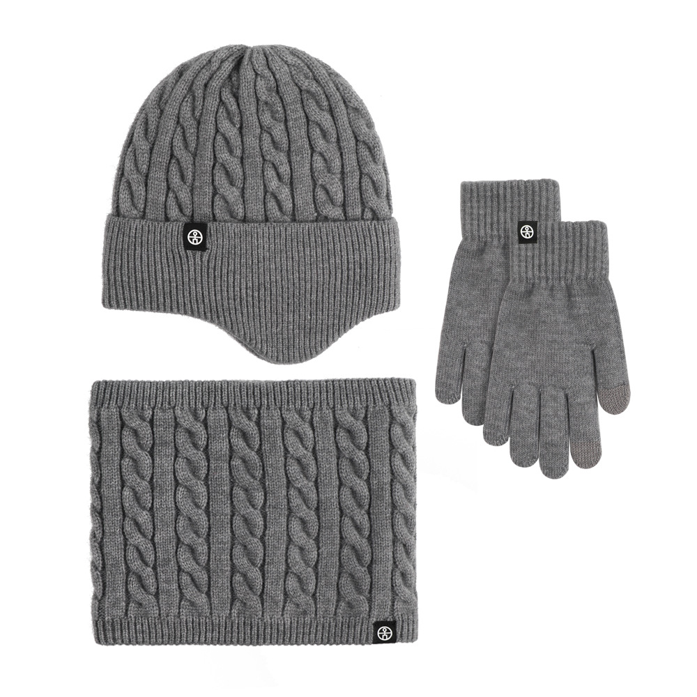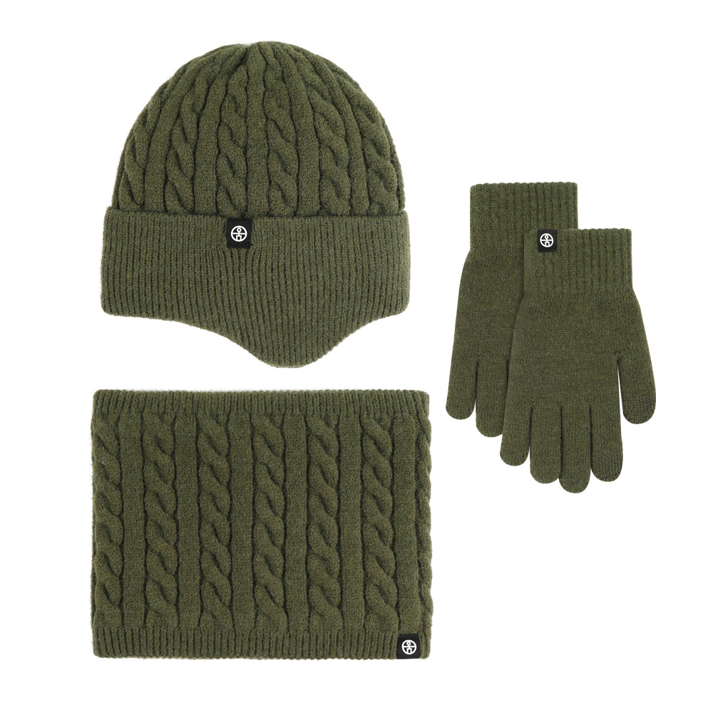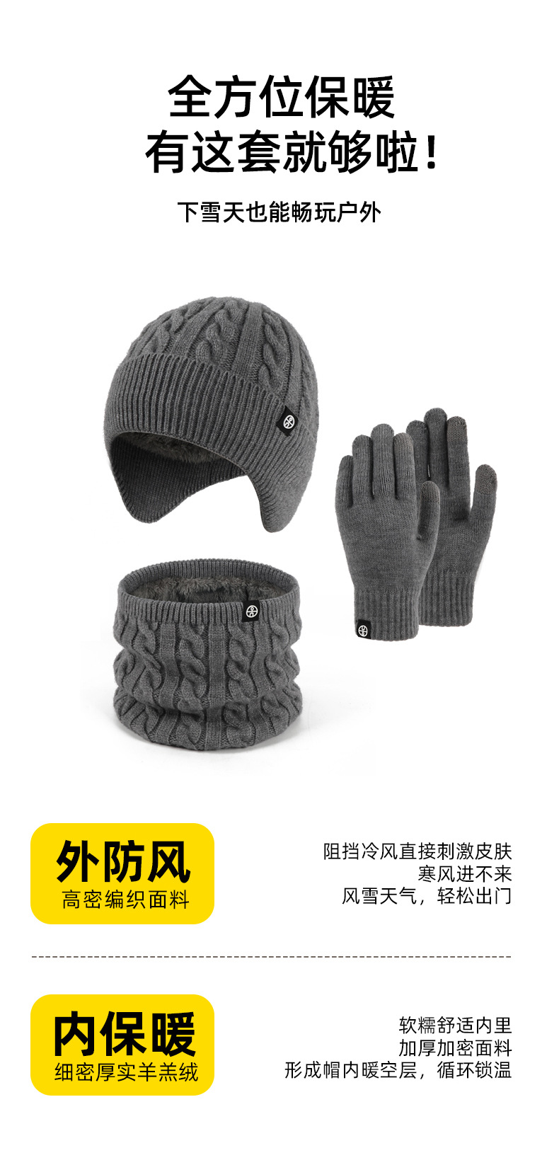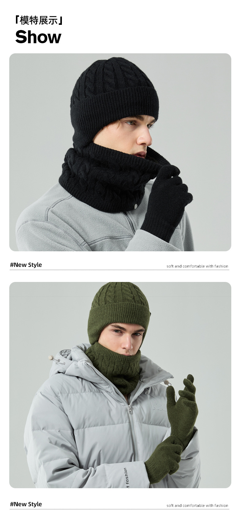 겨울 스카프 따뜻한 3 피스 세트 기모 야외 두꺼운 귀 보호 니트 모자 스카프 장갑 3 피스 세트