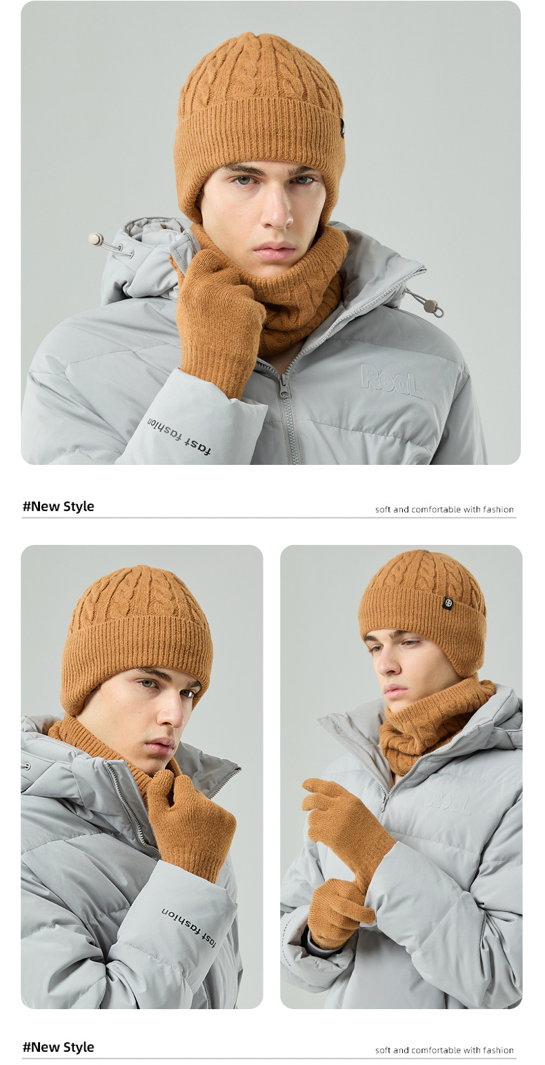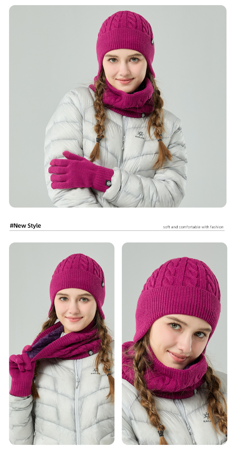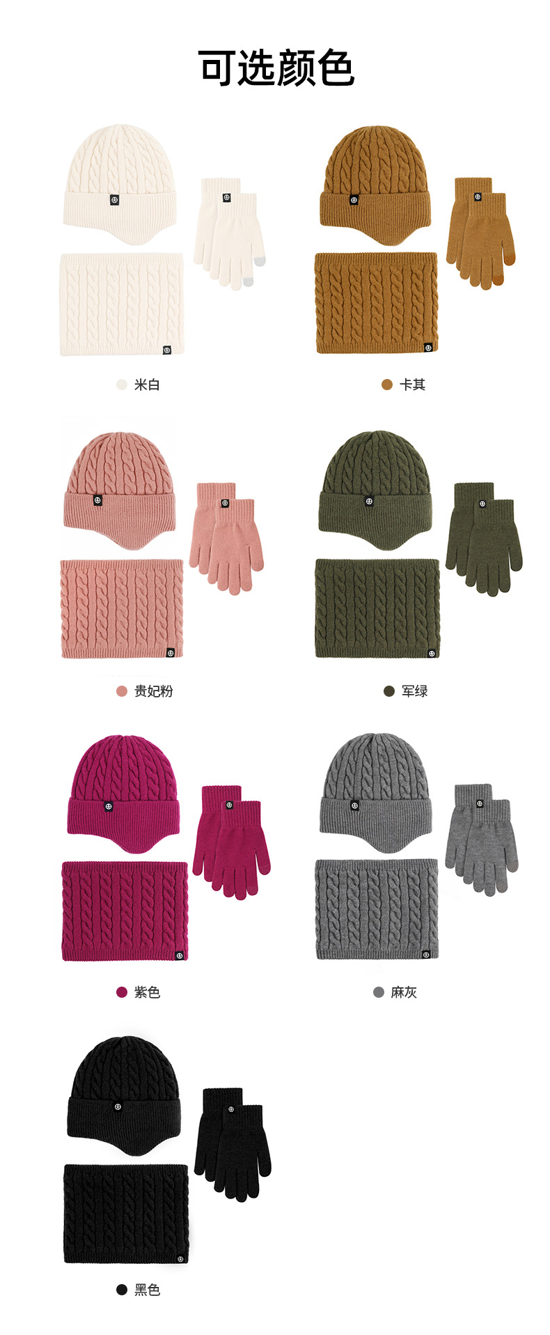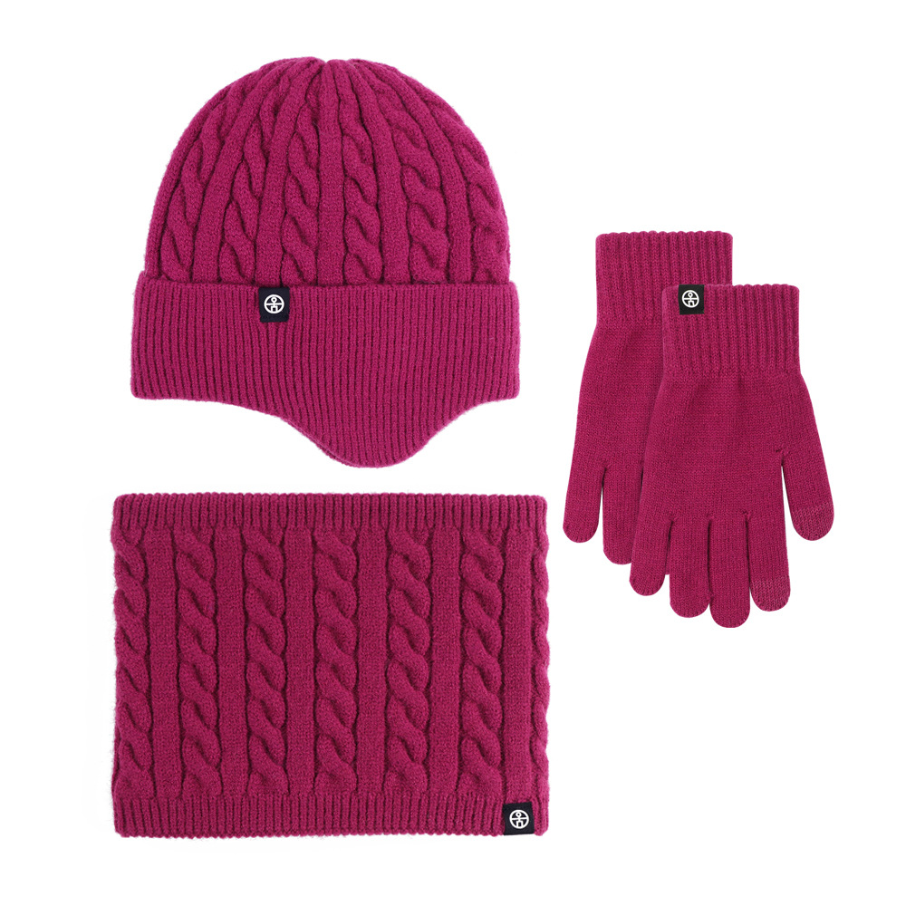 겨울 스카프 따뜻한 3 피스 세트 기모 야외 두꺼운 귀 보호 니트 모자 스카프 장갑 3 피스 세트