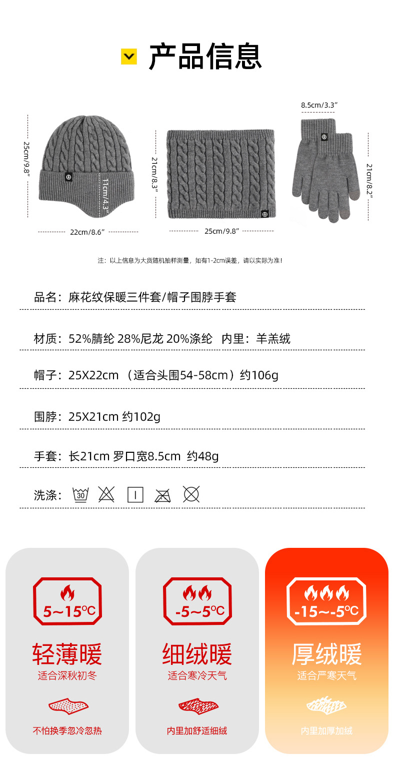 겨울 스카프 따뜻한 3 피스 세트 기모 야외 두꺼운 귀 보호 니트 모자 스카프 장갑 3 피스 세트스토어 가기