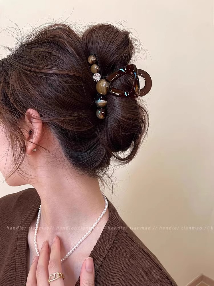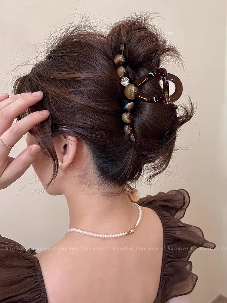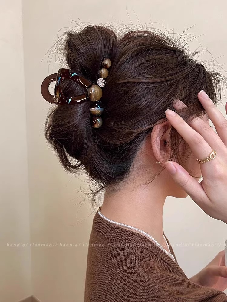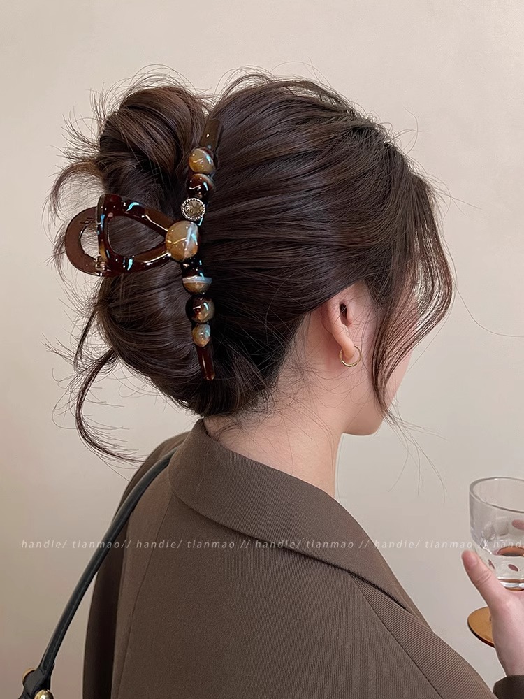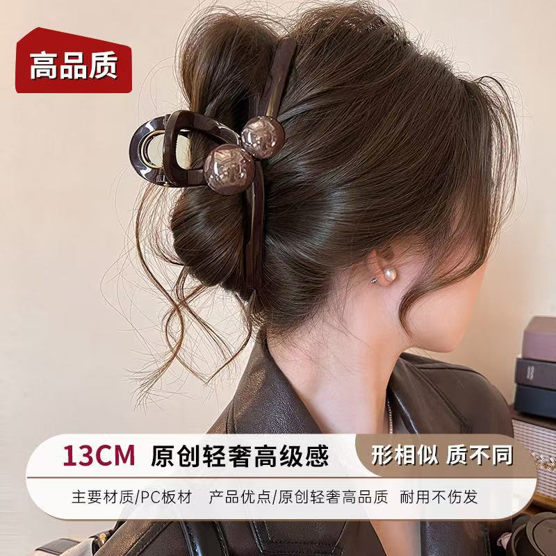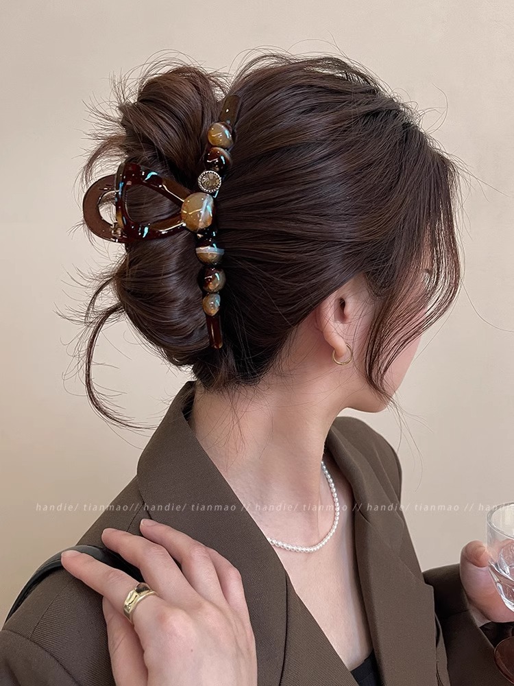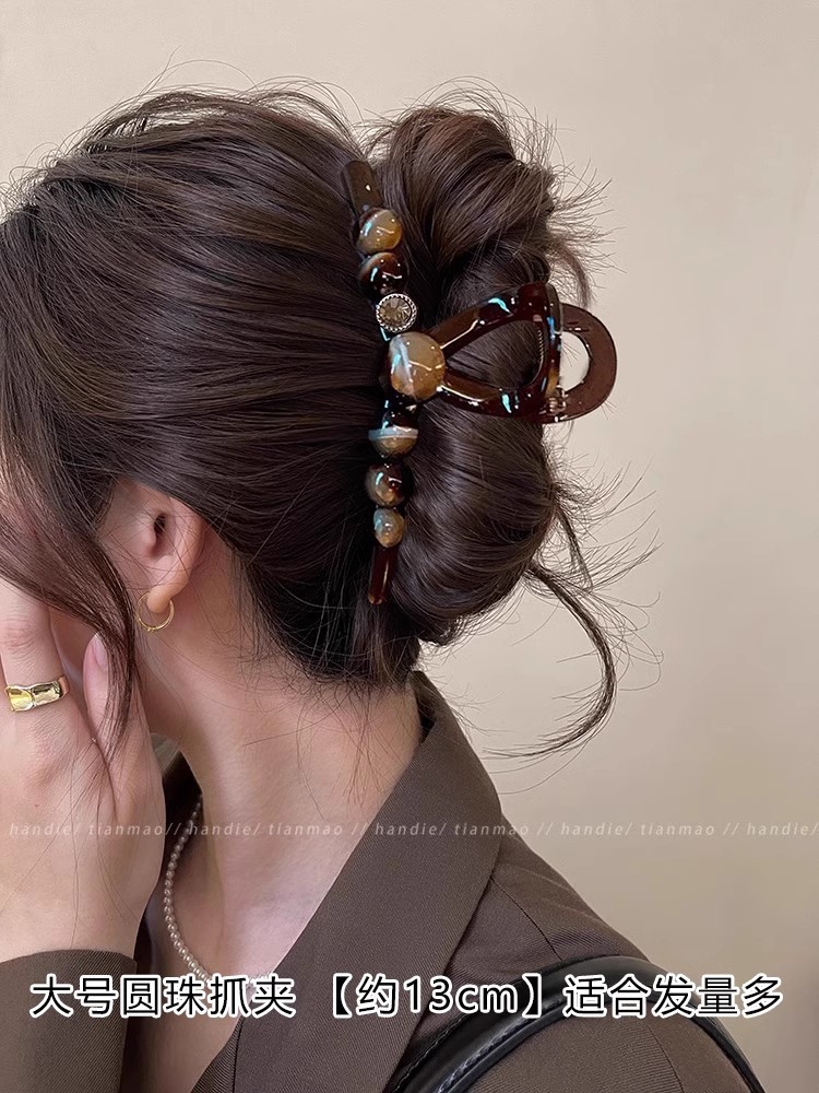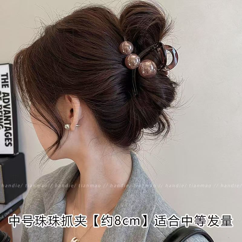 여성을위한 하이 엔드 볼 비드 클립 2025 여성용 새로운 스타일 헤어 클립 뒷머리 복고풍 머리핀 상어 클립 대형 헤어 액세서리스토어 가기