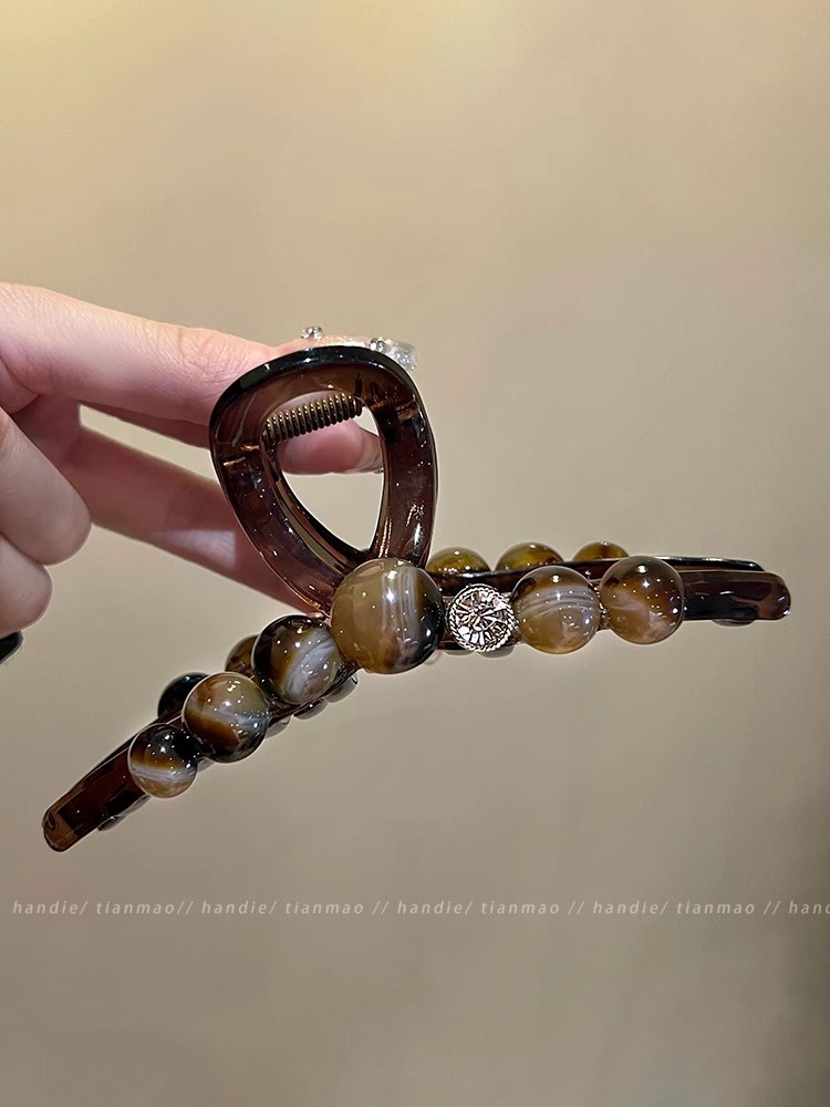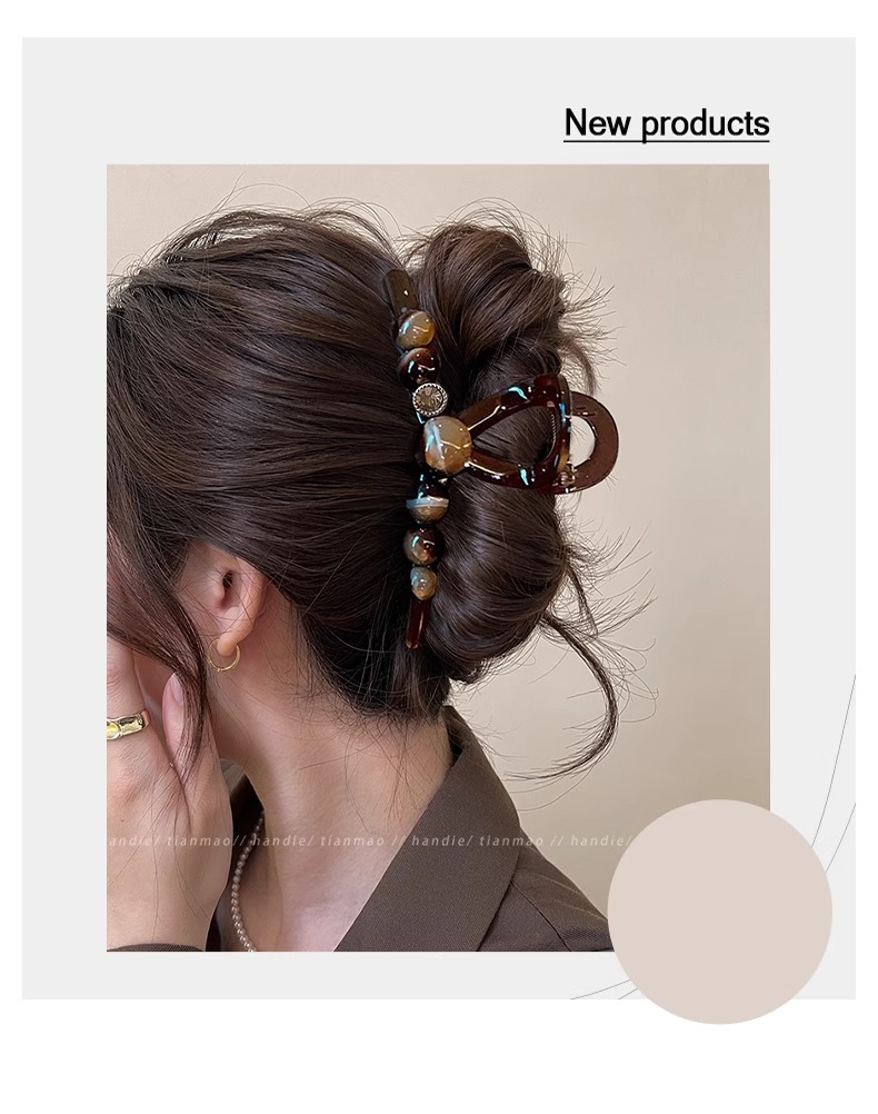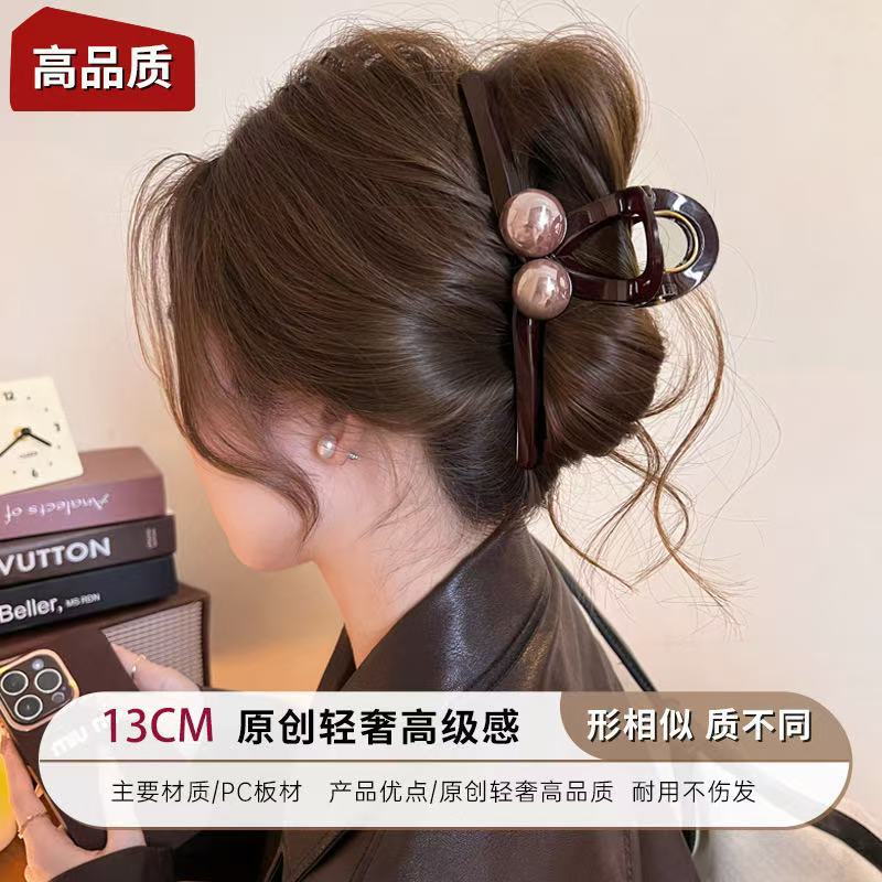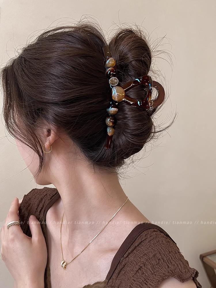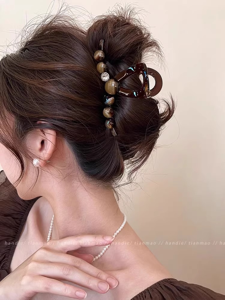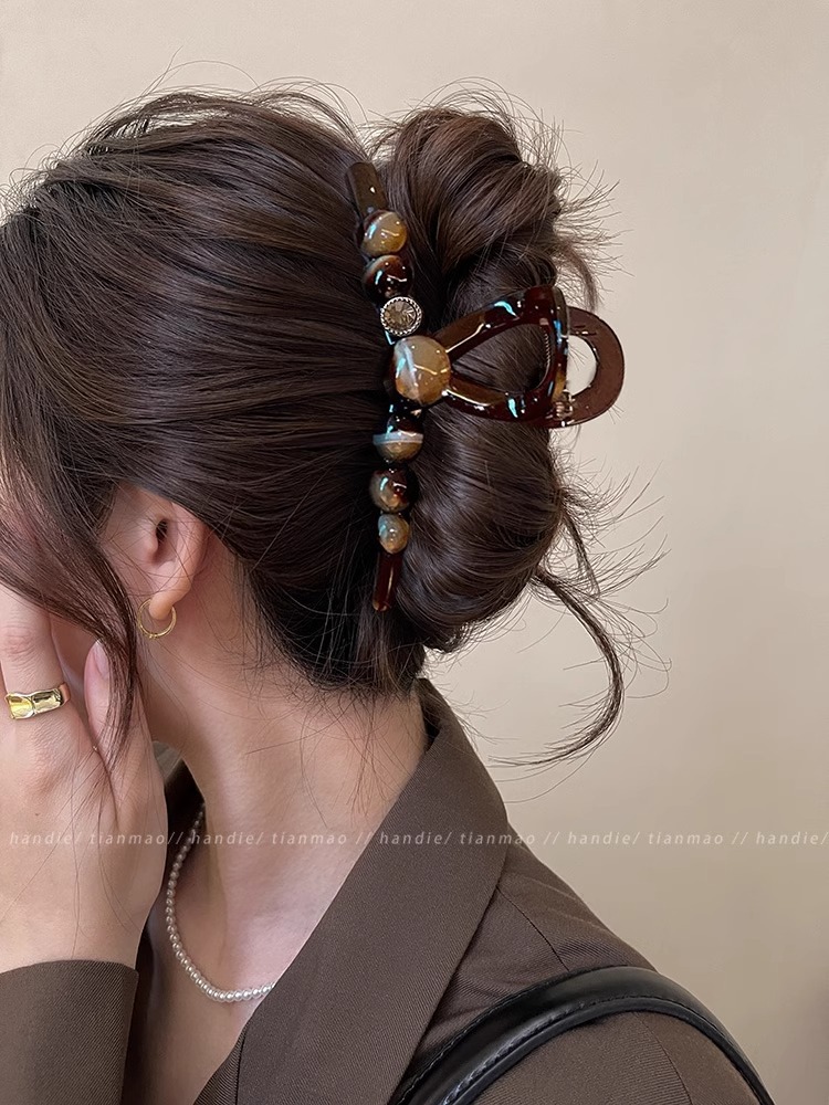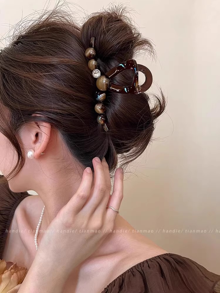 여성을위한 하이 엔드 볼 비드 클립 2025 여성용 새로운 스타일 헤어 클립 뒷머리 복고풍 머리핀 상어 클립 대형 헤어 액세서리스토어 가기