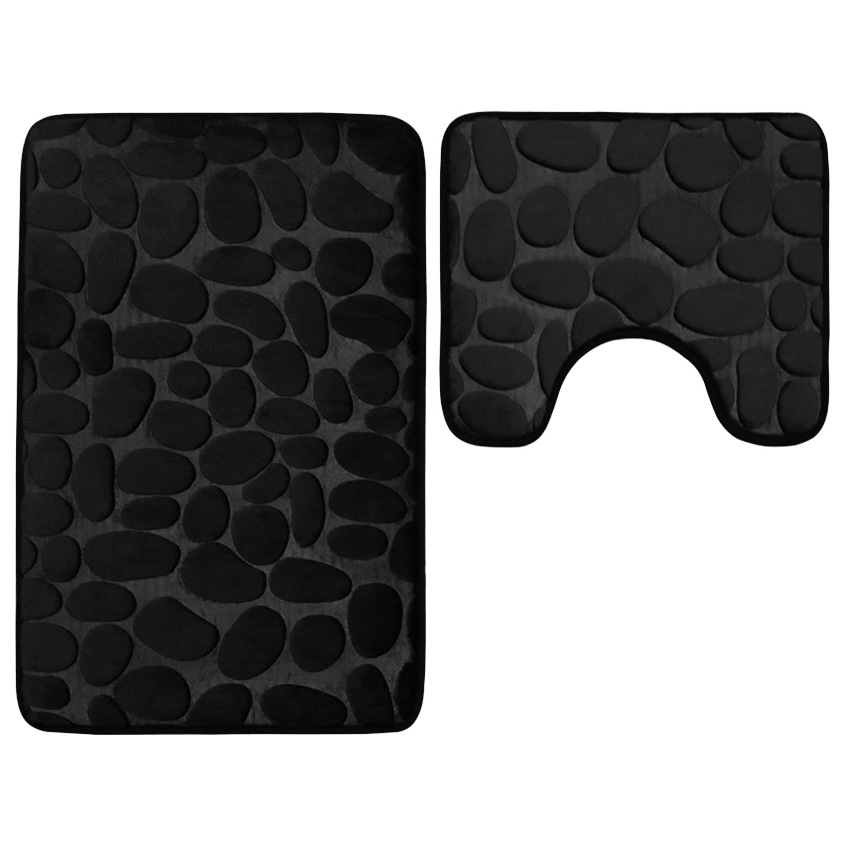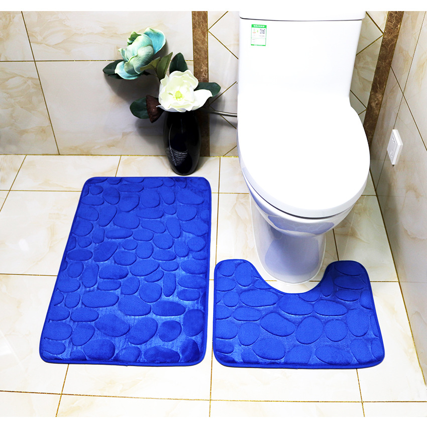 도매 양각 조약돌 산호 벨벳 흡수성 카펫 욕실 바닥 매트 화장실 U 자형 욕실 발 매트 2 피스 세트스토어 가기