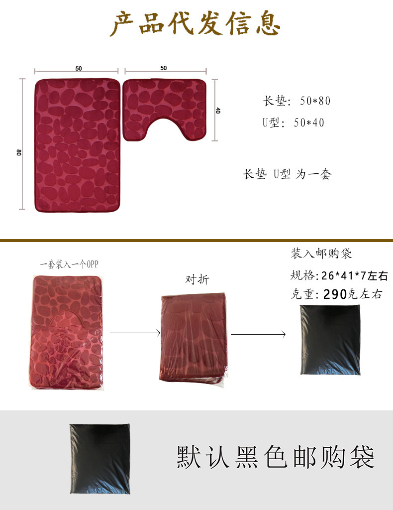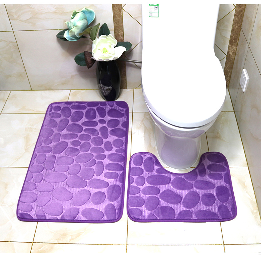 도매 양각 조약돌 산호 벨벳 흡수성 카펫 욕실 바닥 매트 화장실 U 자형 욕실 발 매트 2 피스 세트