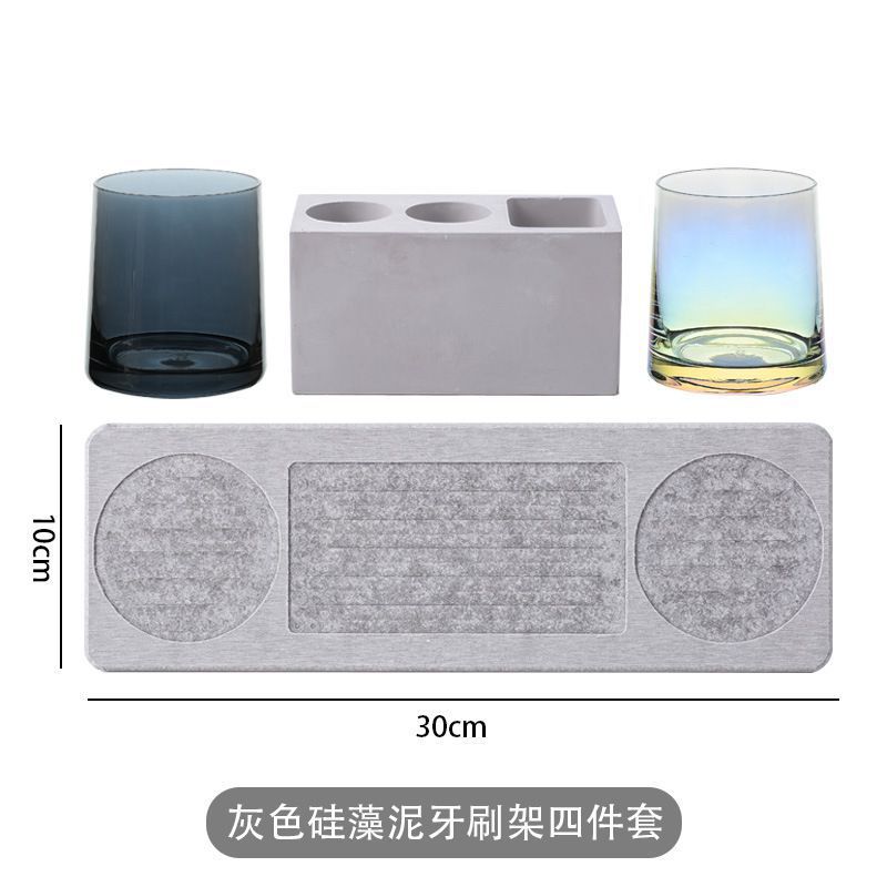 • ❂시멘트 회색 칫솔 홀더 + 크리스탈 유리*2