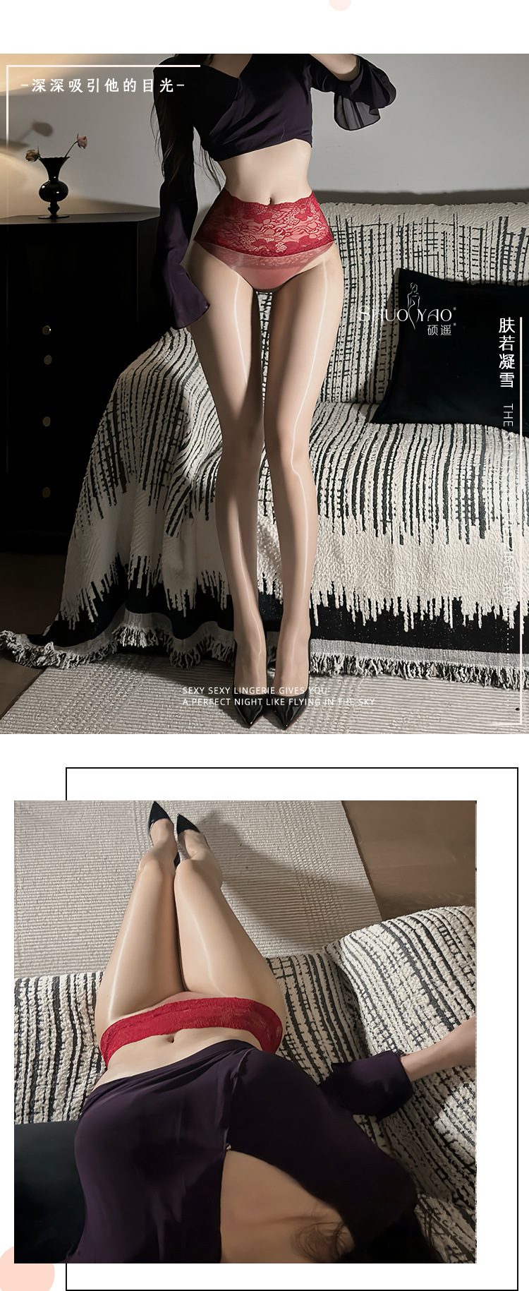 Shuo Yao 새로운 0.01d 울트라 얇은 블랙 실크 슬라이드 레이스 허리 플러스 사이즈 오로라 스타킹 원활한 Crotch 팬티 스타킹 A300스토어 가기