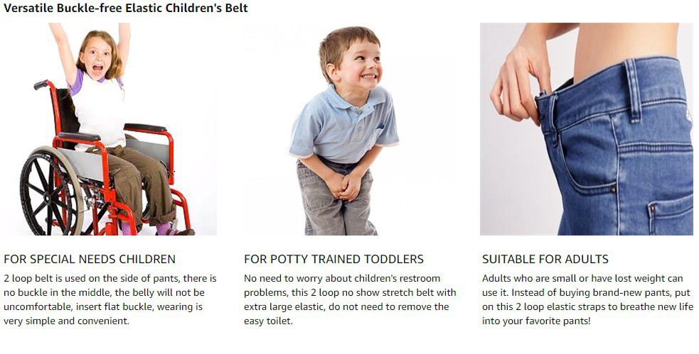아마존 새로운 어린이 2 루프 NO 버클 벨트 보이지 않는 벨트 학생 탄성 벨트