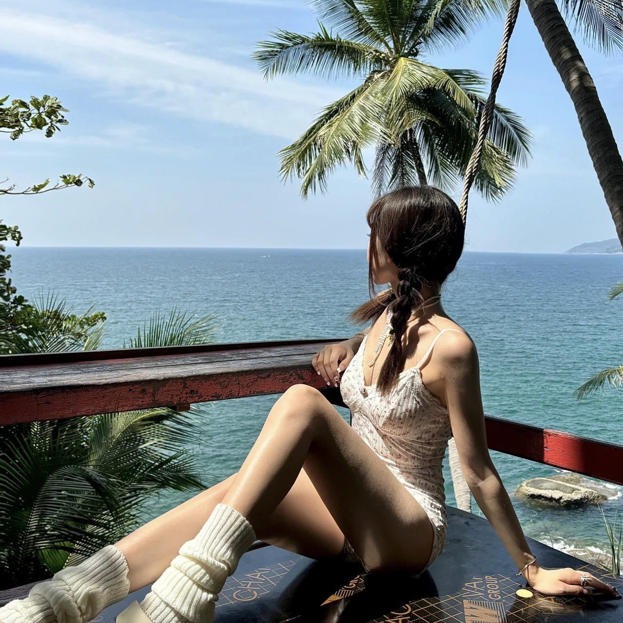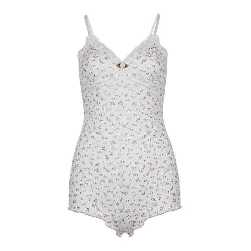 새로운 섹시한 란제리 섹시한 레이스 바느질 꽃 점프 수트 V-Neck 로즈 꽃 슬림-맞는 휴일 수영복
